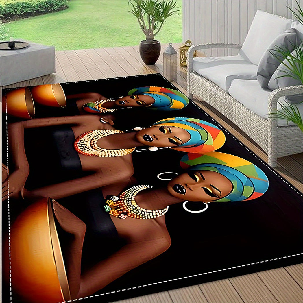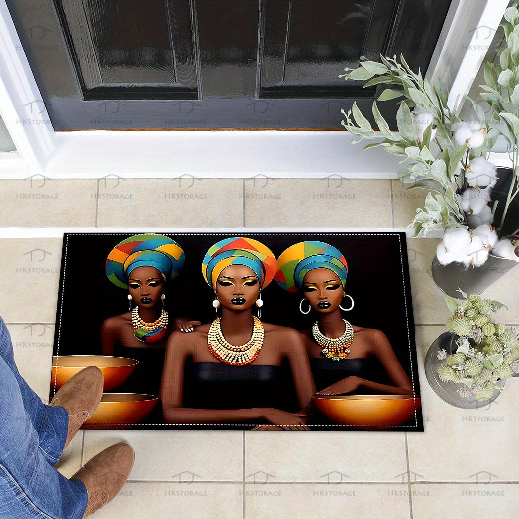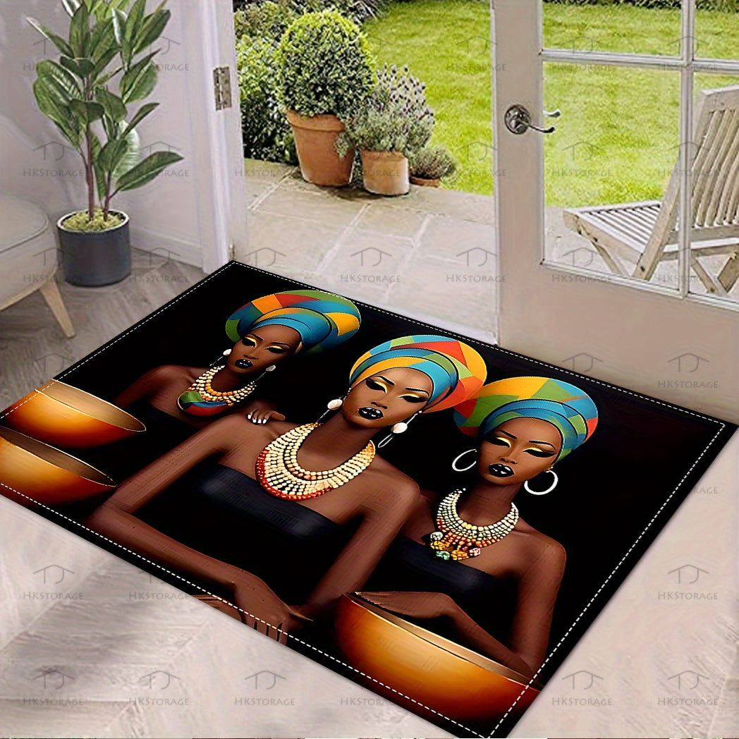 Afrika ilhomlangan ayol dizayni bilan turli joylarda foydalanish uchun mo'ljallangan, sirpanmaydigan va yuvilishi mumkin bo'lgan kutib olish matosi, bir nechta o'lchamlarda mavjud.