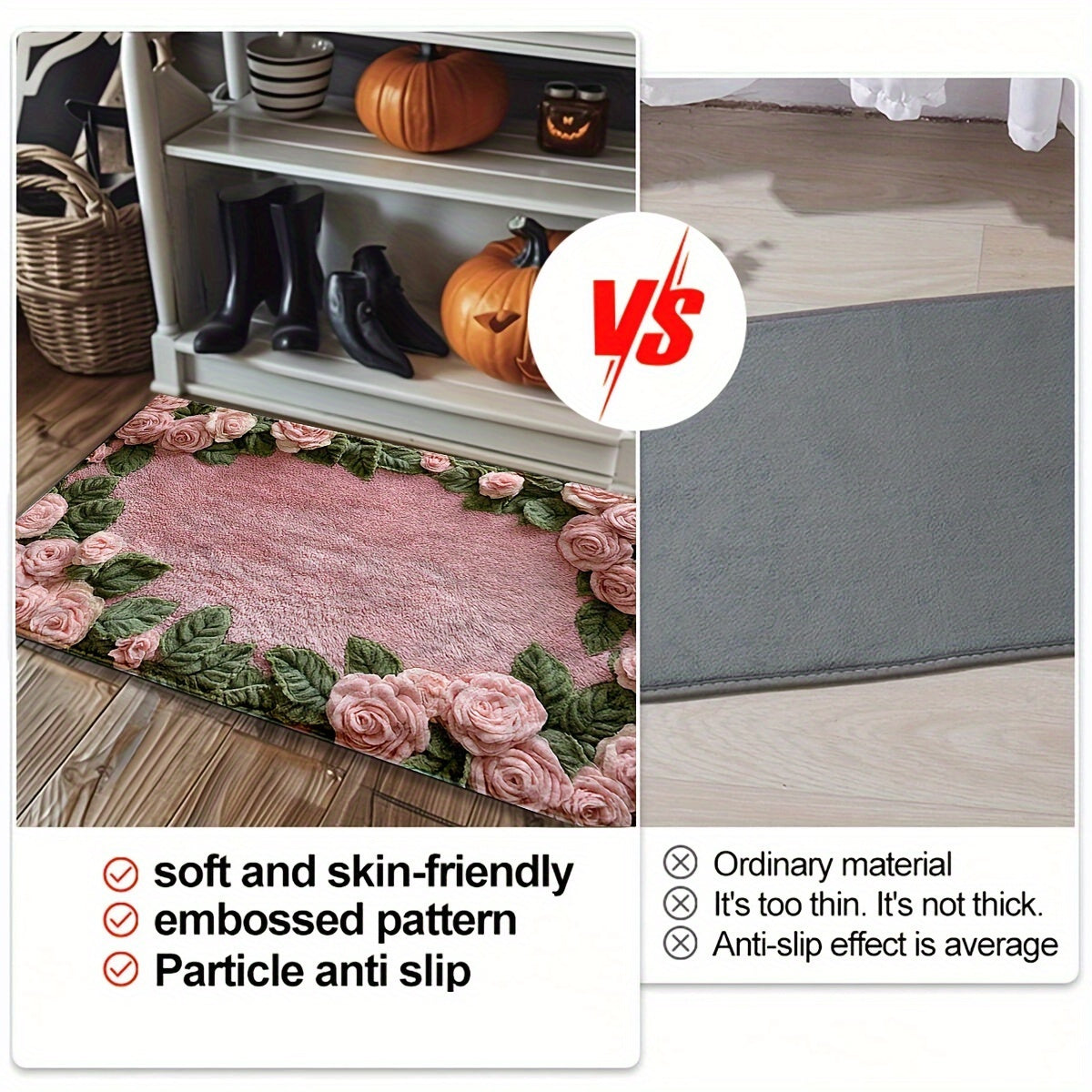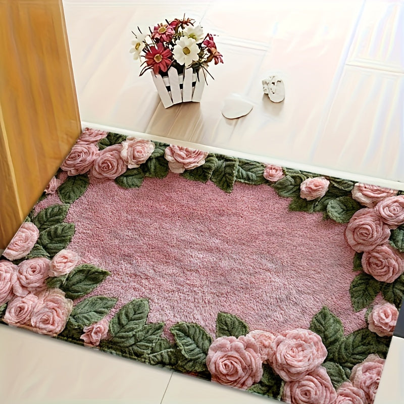 Chic pushti gul dizaynidagi sirpanmaydigan hammom matosi, past to'siq va TPR orqa qismi bilan. Yuvish oson va hammom, yotoqxona, oshxona yoki kirish joyida foydalanish uchun mukammal. Qishki uy bezaklaringizga zamonaviy qo'shimcha.