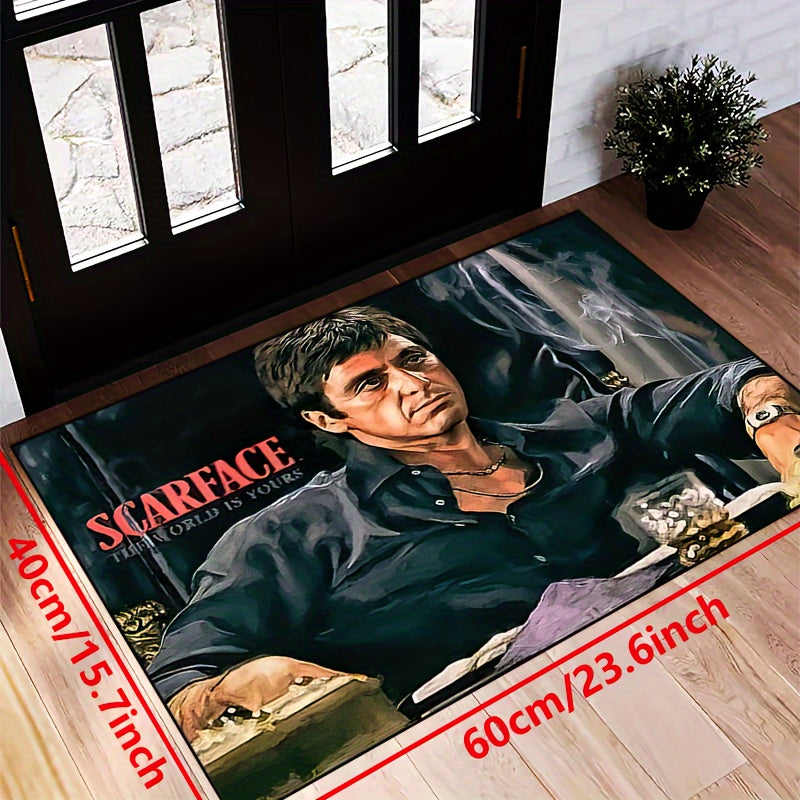 Qattiq yopishqoq bo'lmagan, mashina yuviladigan polyester eshik matto gilami, 1 m² uchun 1000g qalin fil't konstruktsiyasiga ega. Matto 15x23 dan 63x78 dyuymgacha o'lchamlarda 1 ta bo'lakda va qora fon ustida o'tirgan erkak tasvirini namoyish etadi.