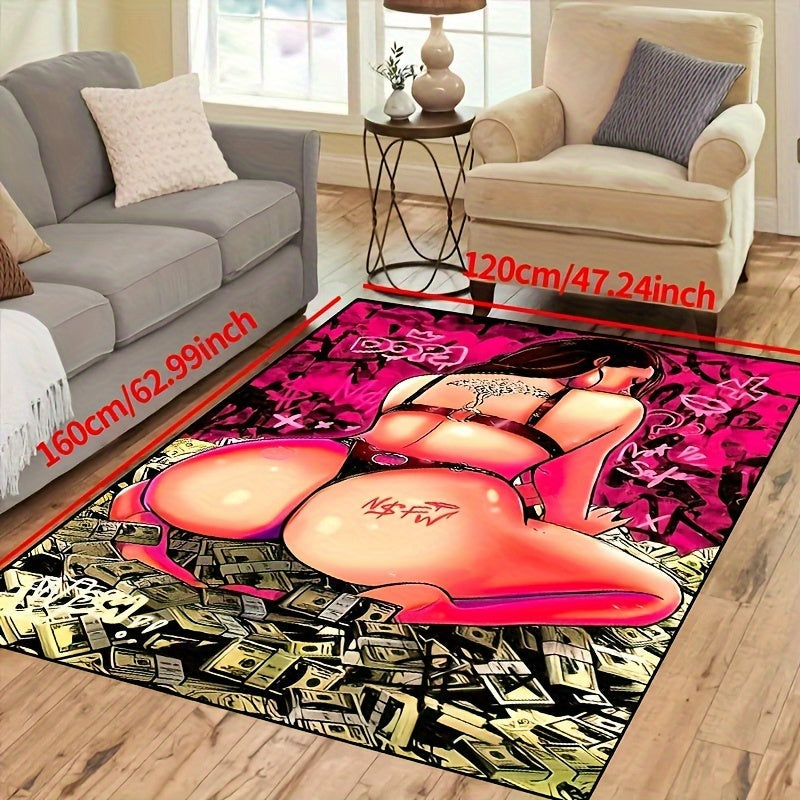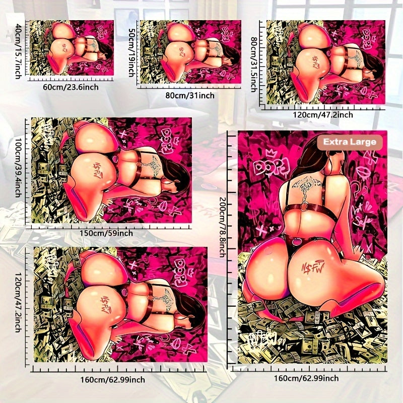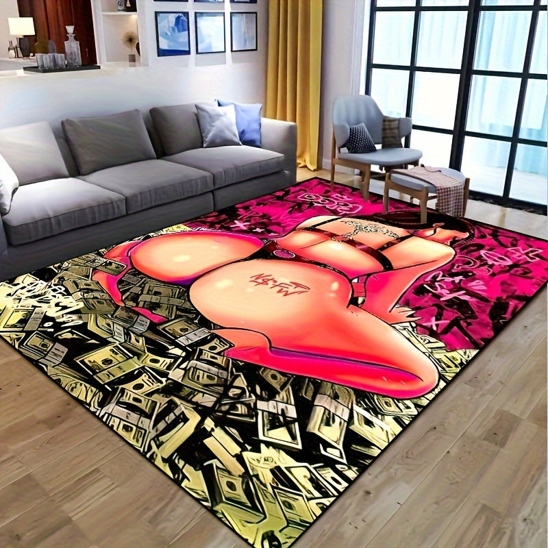 Yogʻilmaydigan suv oʻtkazmaydigan gilam, ichki va tashqi foydalanish uchun tatuirovka qilingan ayol va dollar dizayni bilan