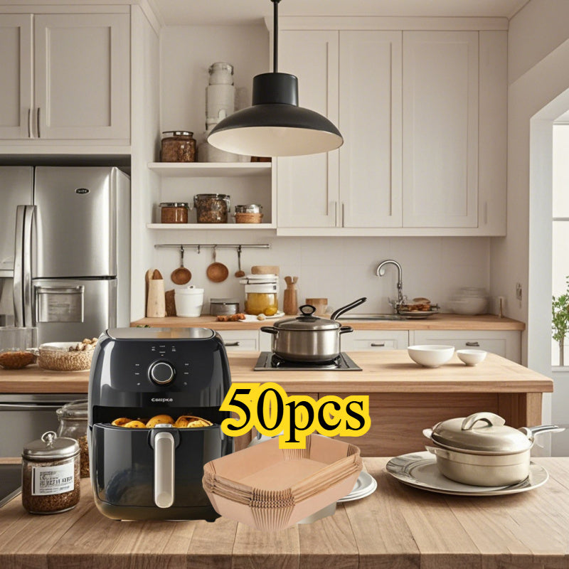 Bir martalik yopishmaydigan havo frityurining qog'ozlari, 200, 100, 50 dona kvadrat pishirish panolari