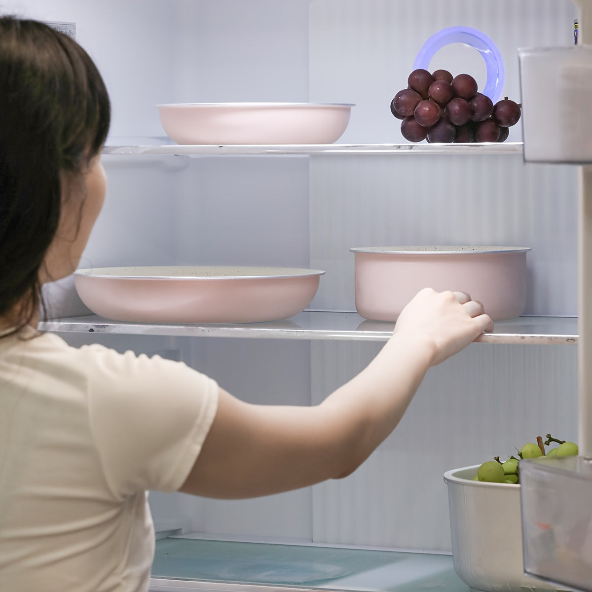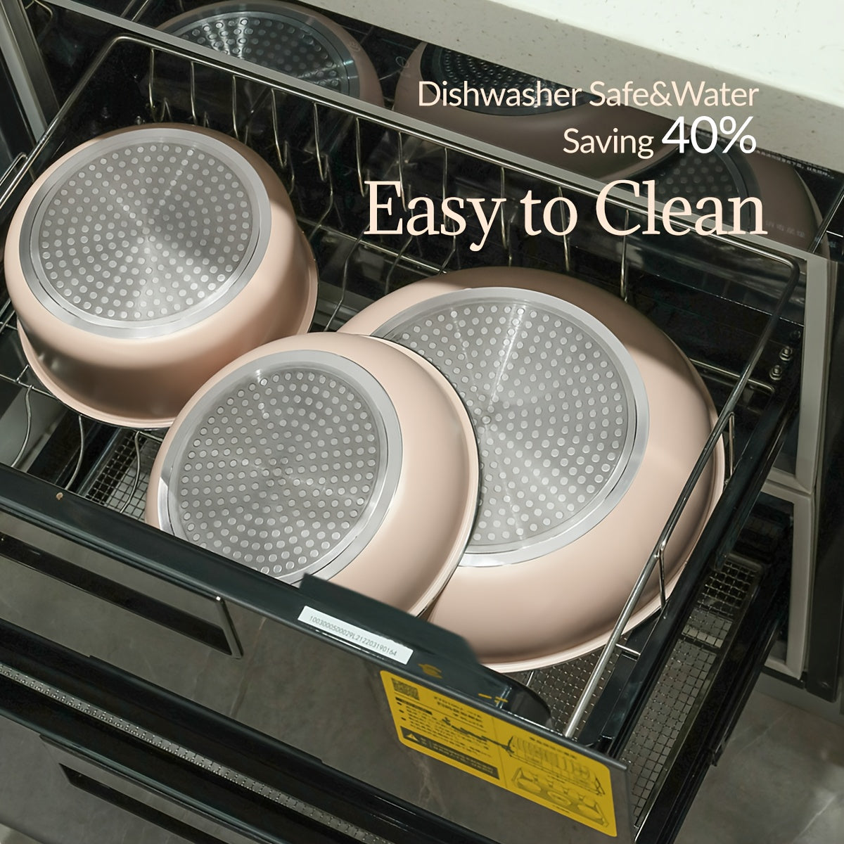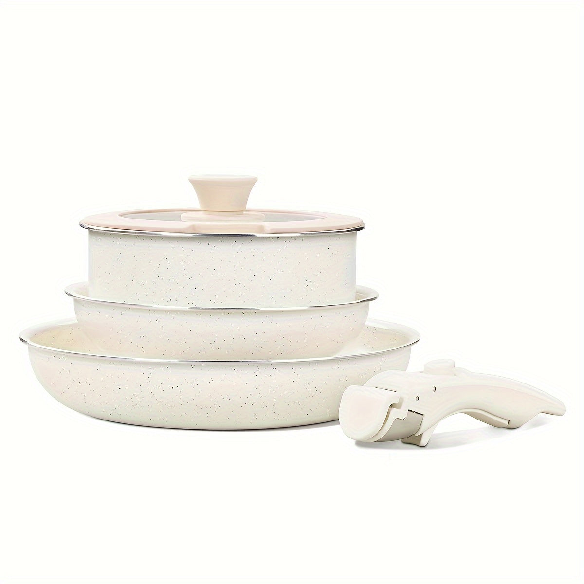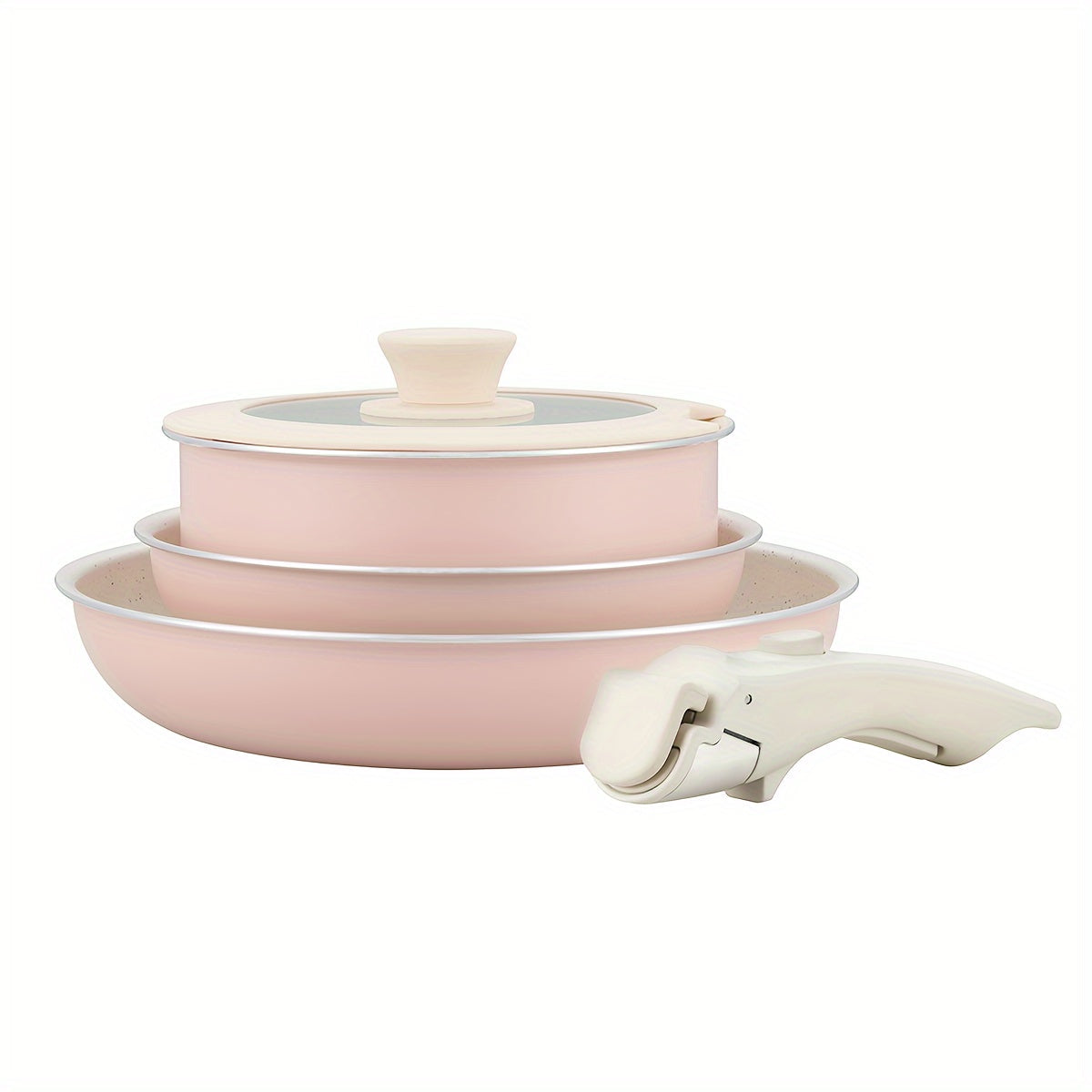 Yopishqoq emas pishirish to'plami - 5 dona, olib tashlanadigan tutqichlar bilan, pechda ishlatish uchun xavfsiz, qulay saqlash uchun yig'iladigan. Sayohat va uy oshxonalari uchun ideal.