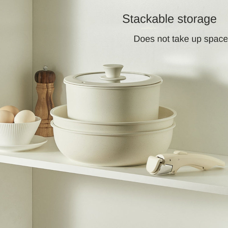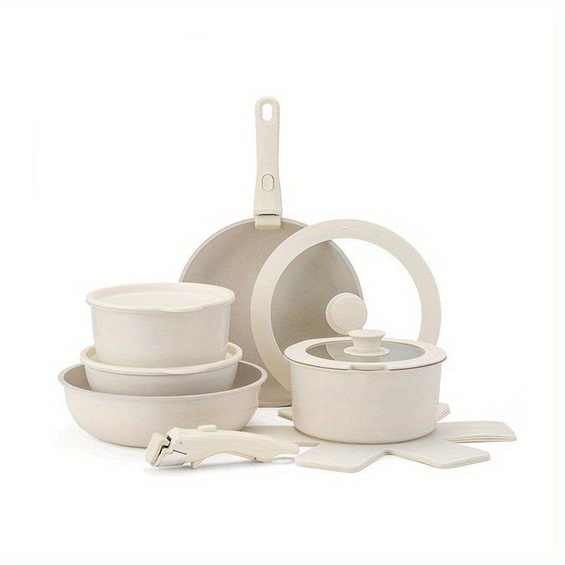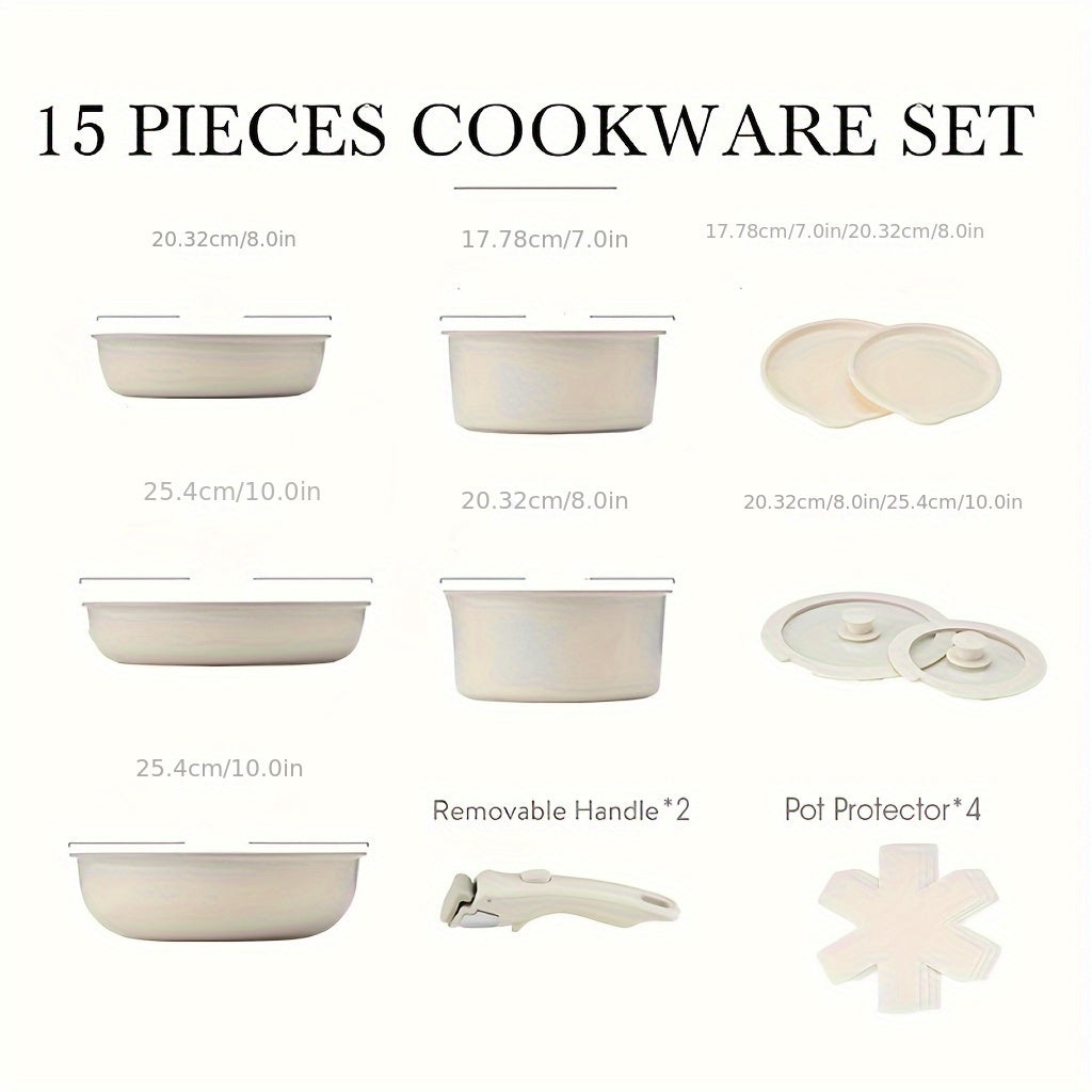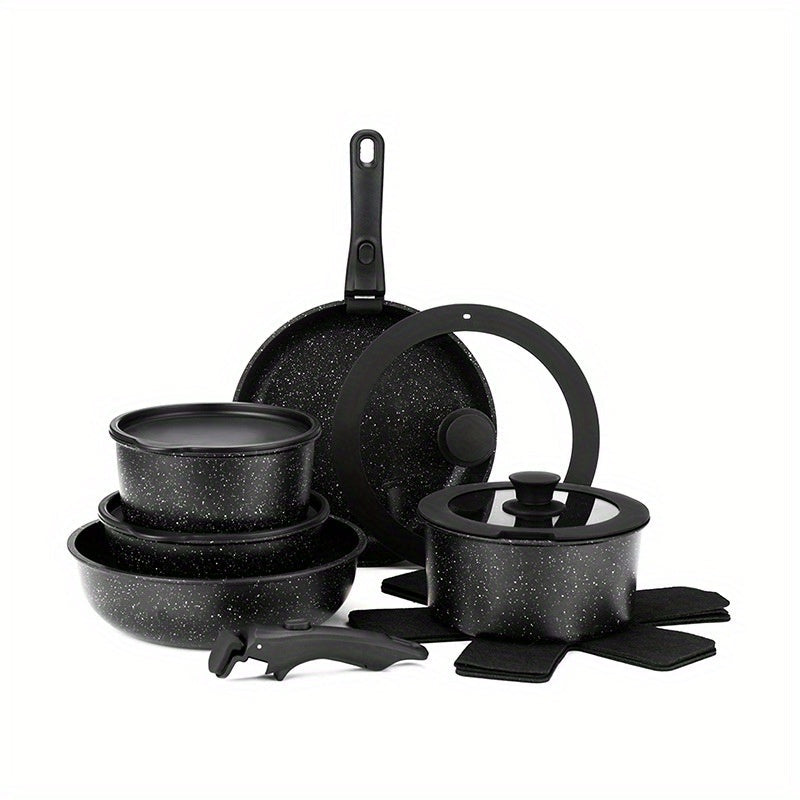 Yopishqoq emas oshxona to'plami, ajratiladigan tutqichlar bilan - 15 dona, induksiya oshxona to'plamlari yopishqoq, pechda xavfsiz qozon to'plami