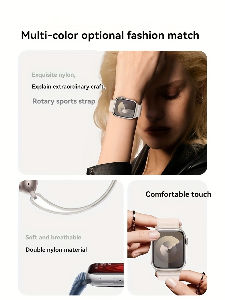 iWatch uchun nylon soat bilaguzuklari: turli o'lchamlar bilan mos, sozlanadigan va erkaklar ham, ayollar ham uchun nafas oladigan.