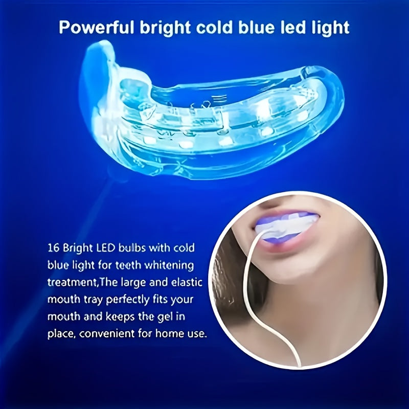 Havodorsiz USB-quvvatlangan portativ tishlarni oqartirish to'plami, erkaklar va ayollar uchun ko'k LED chiroq bilan.
