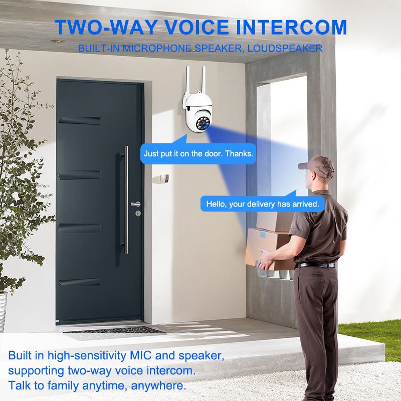 Oimlyo Aqlli Uy Xavfsizlik Kamerasi 1080P Simsiz Wi-Fi, Rangli Tungi Ko'rinish, Harakat Xabarlari va Panoramik Ko'rish, Ikki Tomonlama Ovozni va USB Quvvatini taklif etadi.