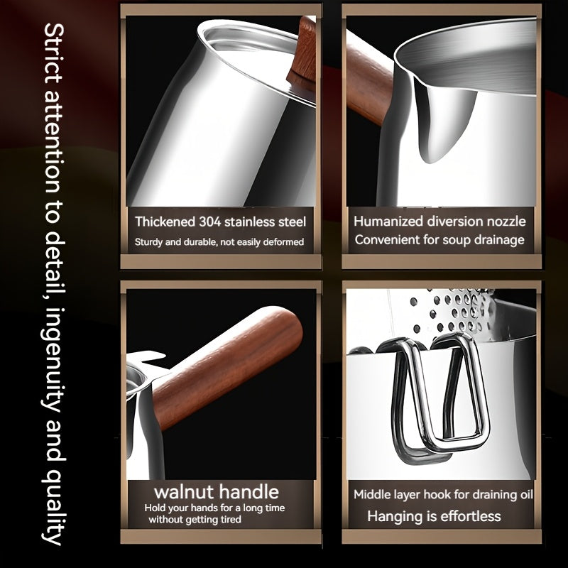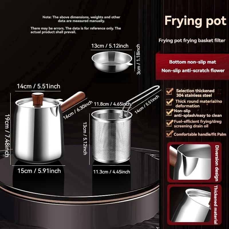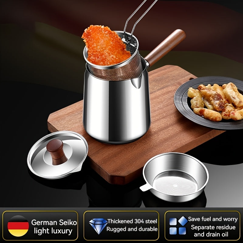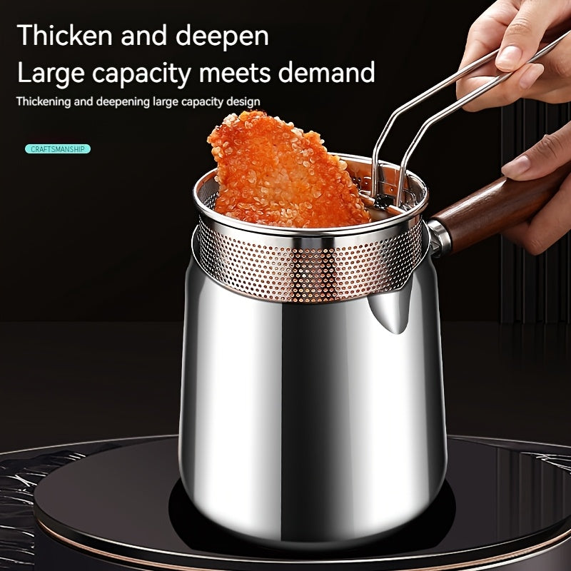 5-ta qismli zanglamaydigan po'latdan yasalgan chuqur qovurish to'plami 2000ml katta sig'imli, plita bilan mos keladi