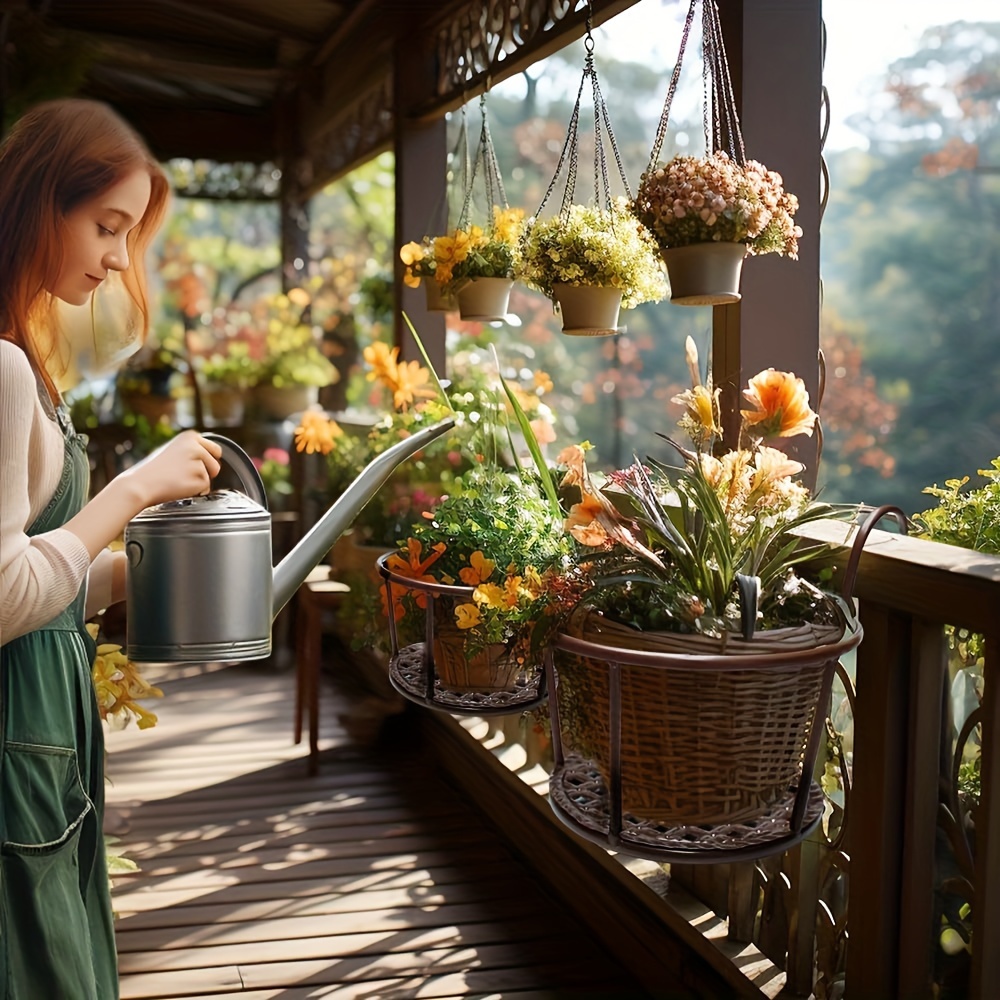 Bir to'plam 3 ta temir san'at osma gullar idishlari, osma joylar uchun mos, balkon, to'siq yoki g'isht devor uchun, qora rang.