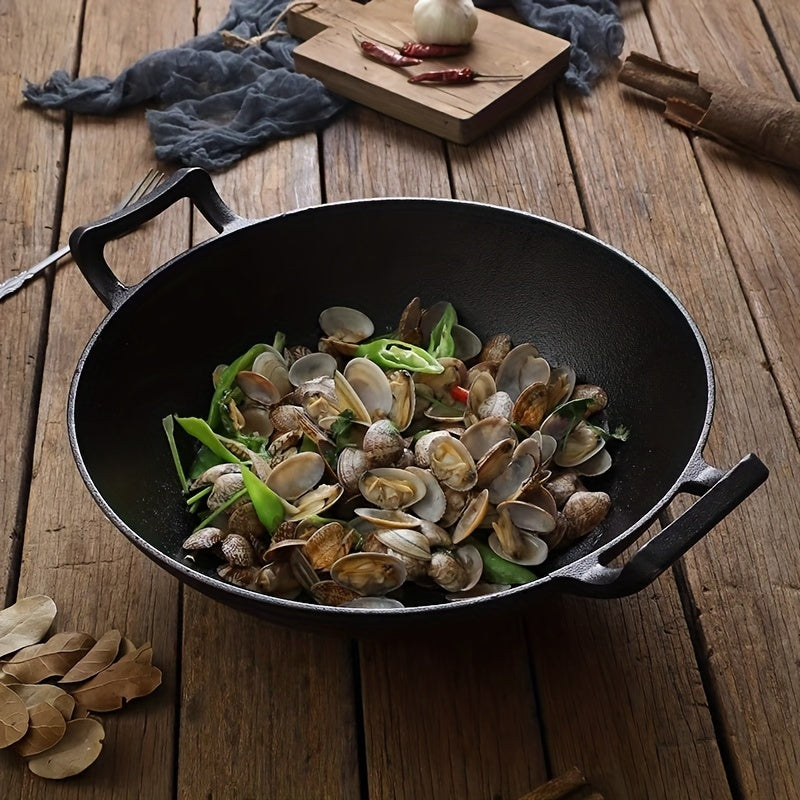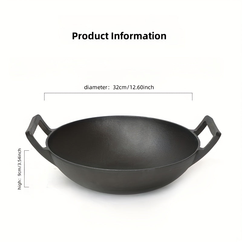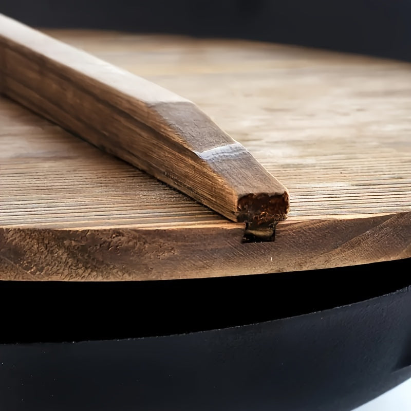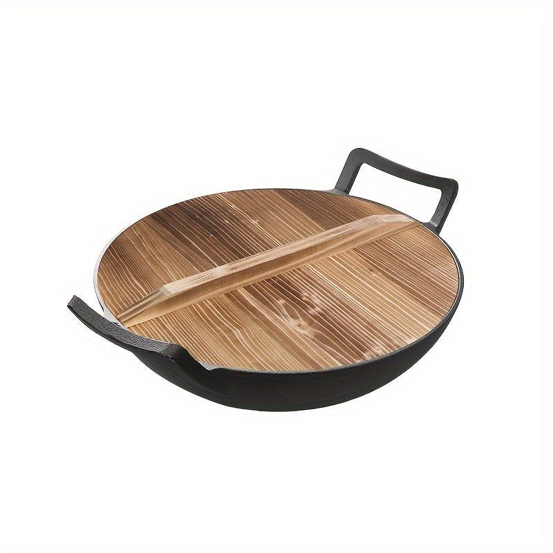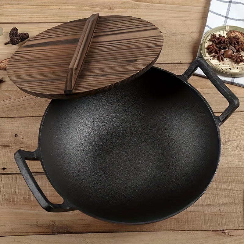 Bir to'plam oldindan ziravorlangan 32.0 sm lik quyma temir oshpaz panasi, yog'och qopqoq, ikki tutqich va uy oshxonalariga va restoranlarga mos bo'lmagan wok.