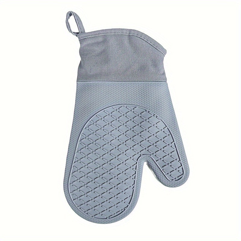 Bir juft qalin, issiqqa chidamli silikon kauchuk qo'lqop, oshxona pechida xavfsiz ishlov berish uchun anti-slip tutqichi bilan. Pishirish va boshqa issiq ishlar uchun mukammal.