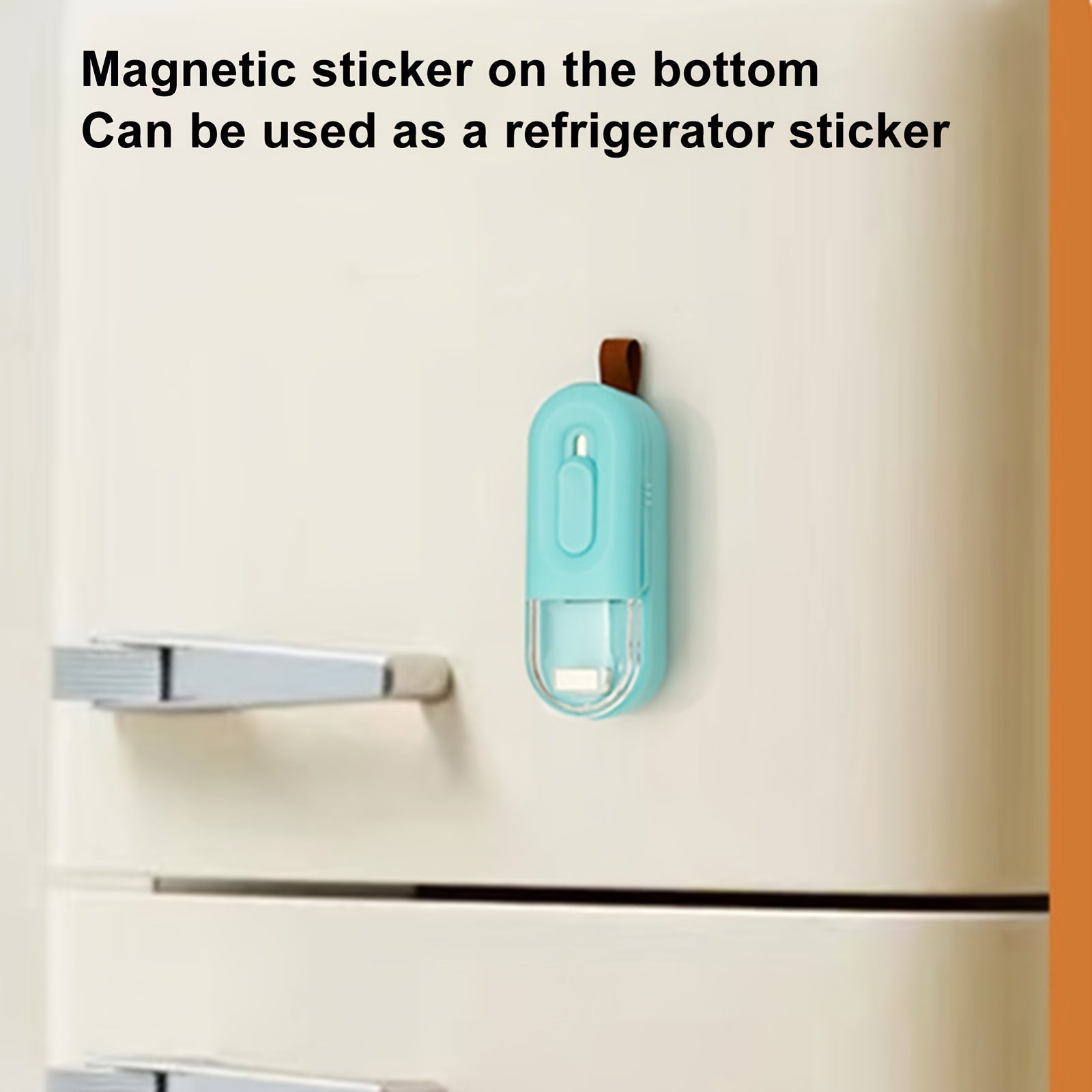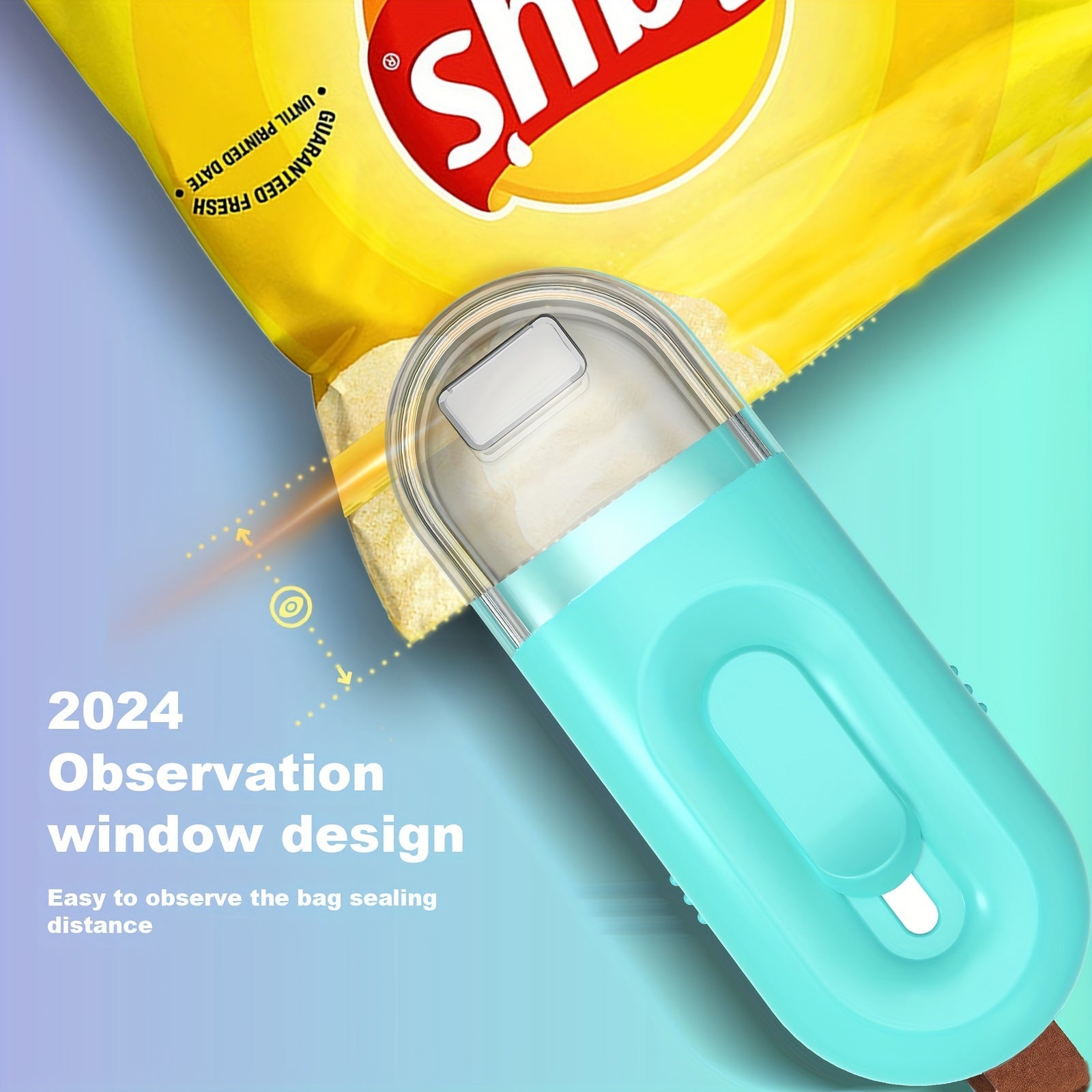 One piece Mini Vacuum Sealer with Heat Sealer and Cutter - qulay ikki birlikda portativ qurilma bo'lib, plastmassa saqlash paketlarini yopish va oziq-ovqat, yengil ovqatlar hamda pechenelarni yangi saqlash uchun ideal. Sevimli yengil ovqatlaringiz va