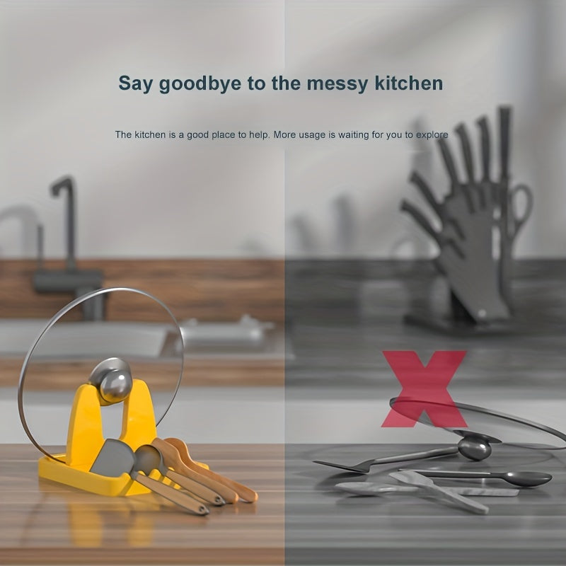 Bir parcha ko'p funksiyali oshxona qozon qopqog'i stendi va asboblar damgasi - yig'iladigan va ixcham ish stoli tashkilotchisi