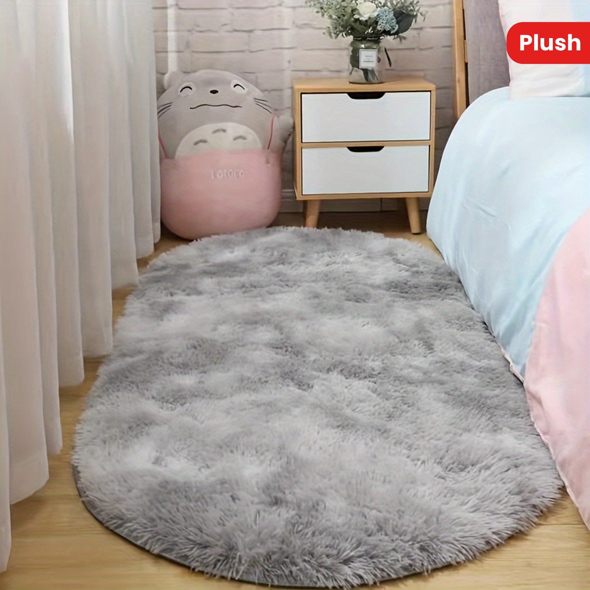 Oval yotoq uchun bir parcha gilam, yashash xonasi divani uchun old qoplama, kofe stoli uchun pol matosi va oddiy fermada uy bezaklari bilan to'ldirilgan yumshoq xona. Bu estetik xona san'at materiallari bilan ham bezatilgan.