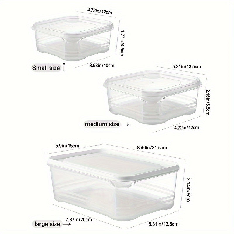 Uchta oziq-ovqat saqlash qutisi to'plami, tushlik va meva konteynerlari bilan, turli o'lchamlarda