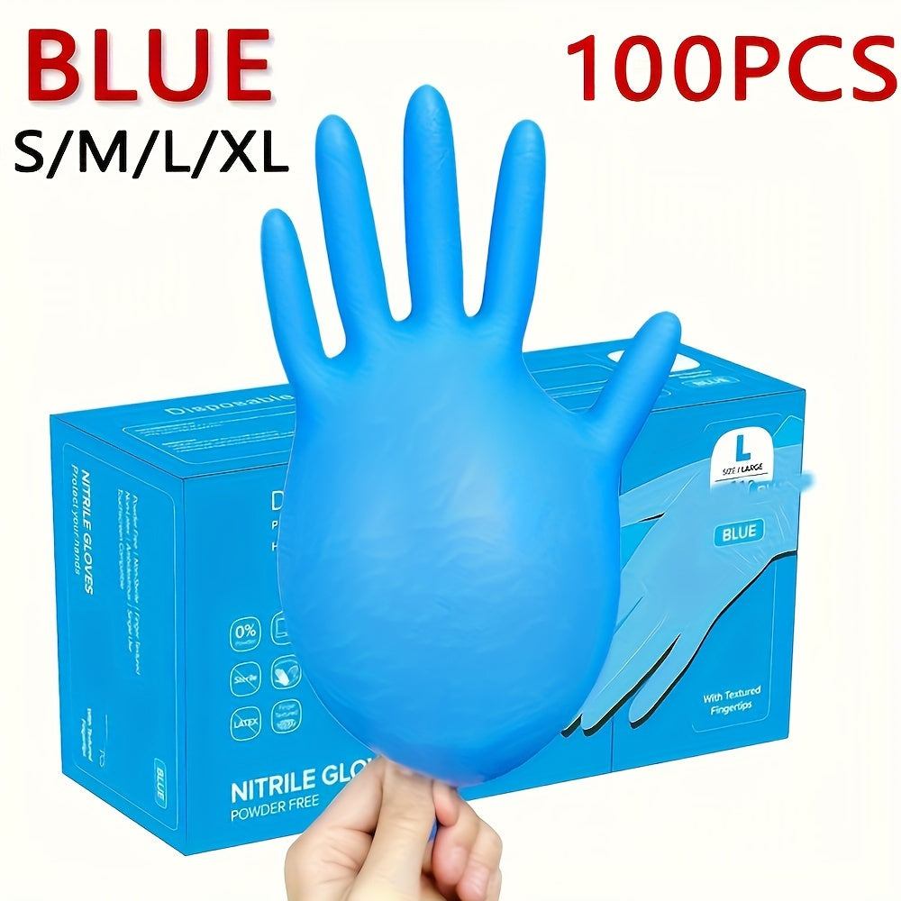Ko'k Nitril bir foydalanish uchun qo'lqoplar, kukunsiz, latekssiz, uy tozalash uchun, 2-100 dona