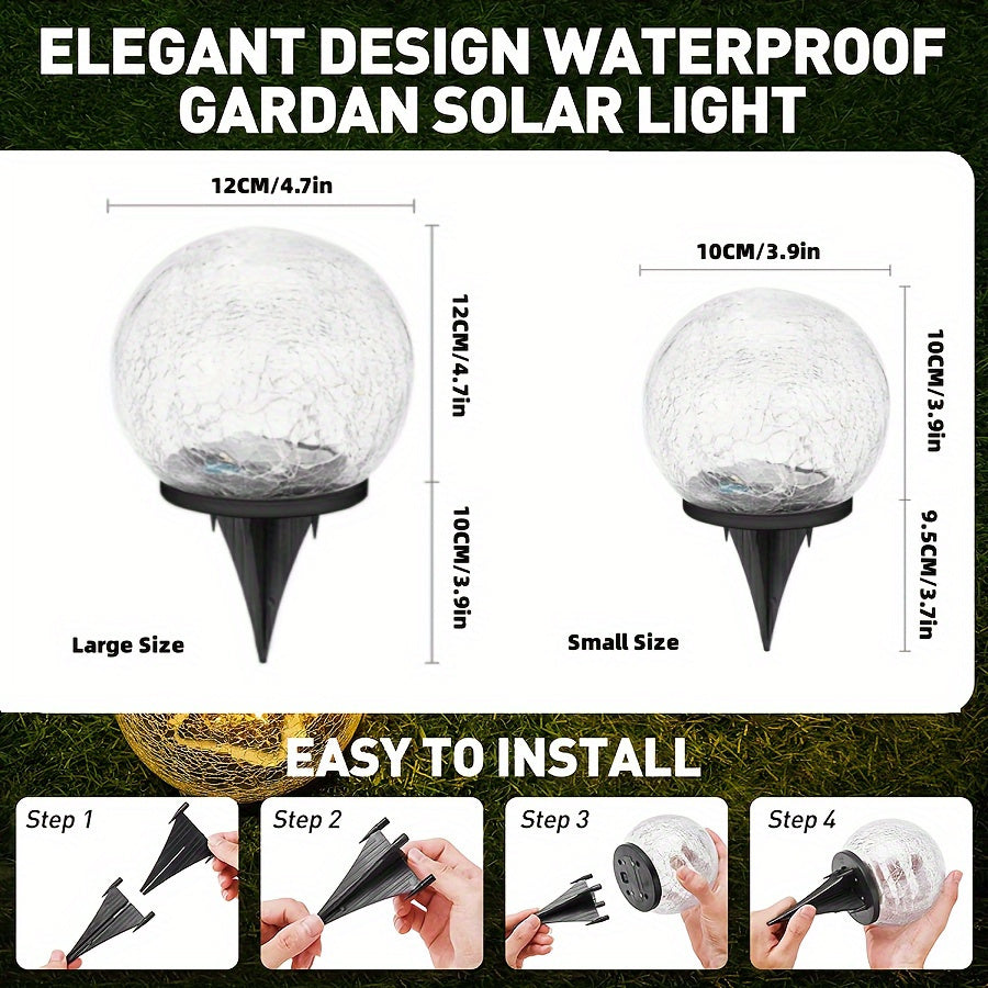 Tashqi dekorativ bog' quyosh chirog'i, yorilgan shisha globus, LED va aqlli yorug'lik sezgichi bilan, patio, maysazor va bog' uchun.