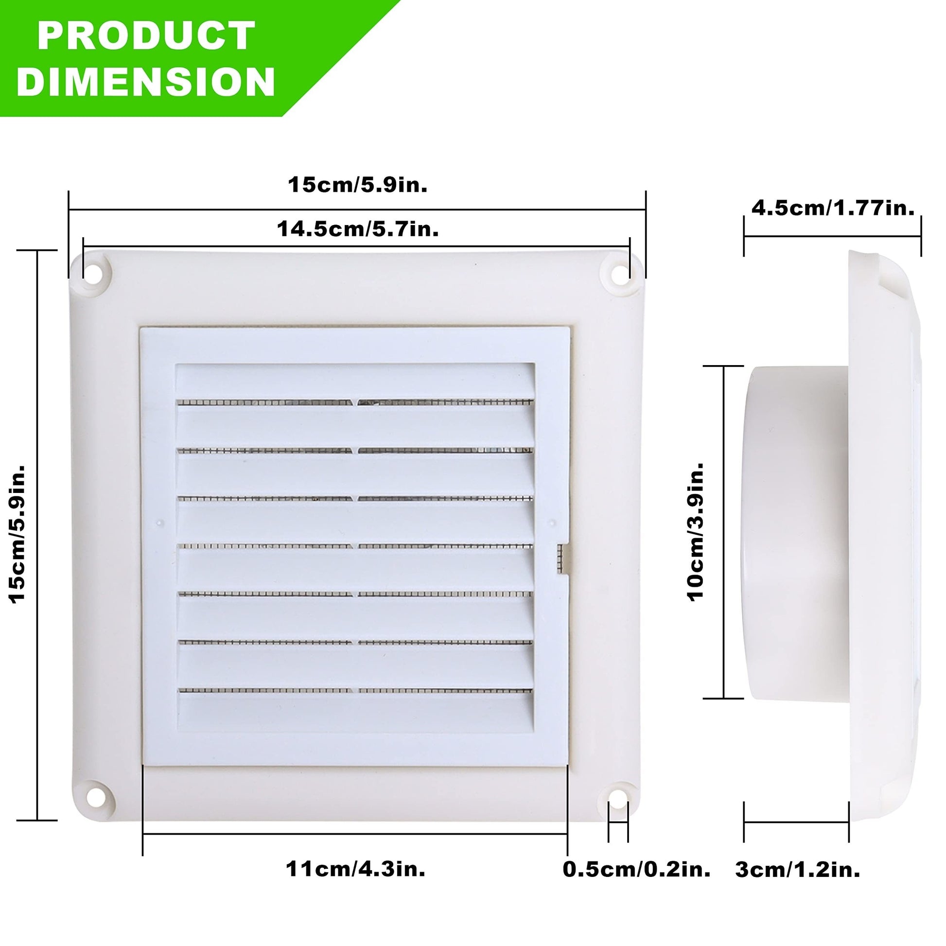 Ochiq havoda quritgich vent qopqog'i, plastmassa, 10.16cm tekis devor vent to'plami