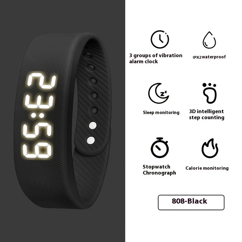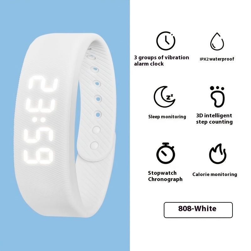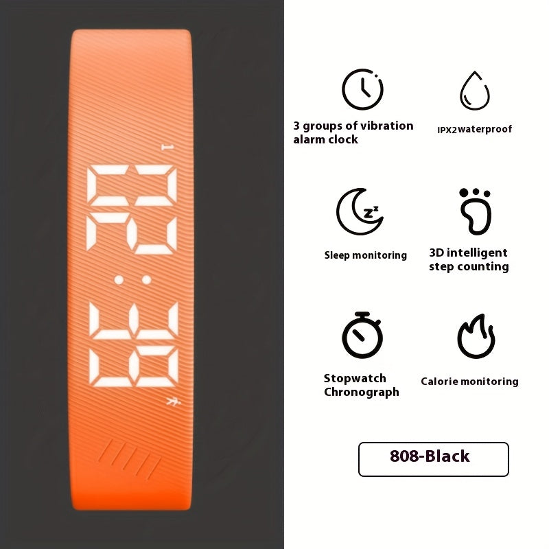 Tashqi elektron soat, silikon tasma, USB zaryadlash, signal, vaqt o'lchagich, vibratsiya, kaloriya monitoringi - zamonaviy, qulay, talabalar va o'qituvchilar uchun ideal, mukammal sovg'a.