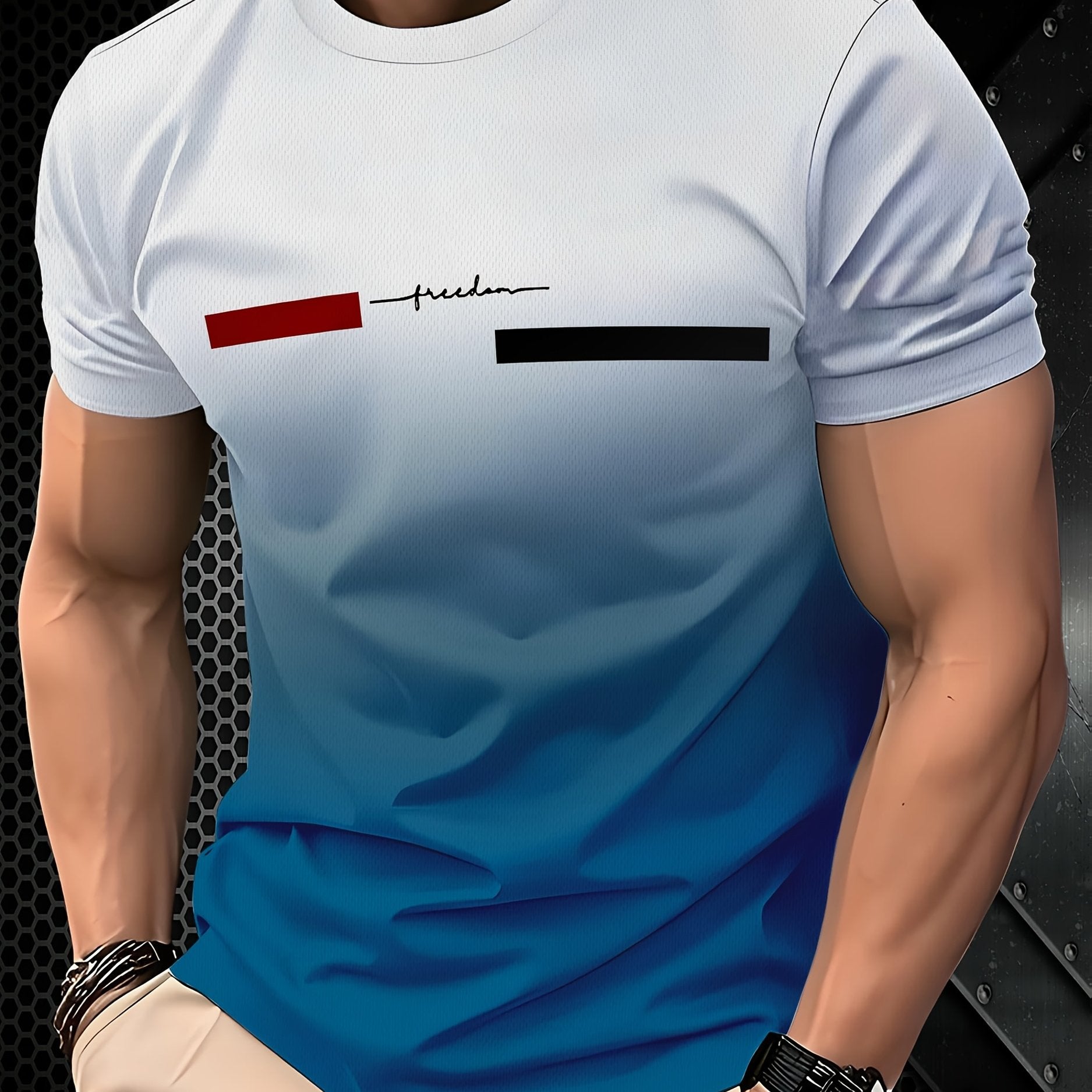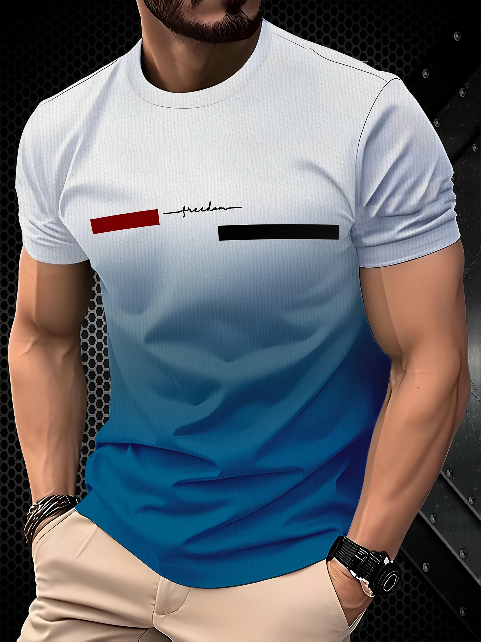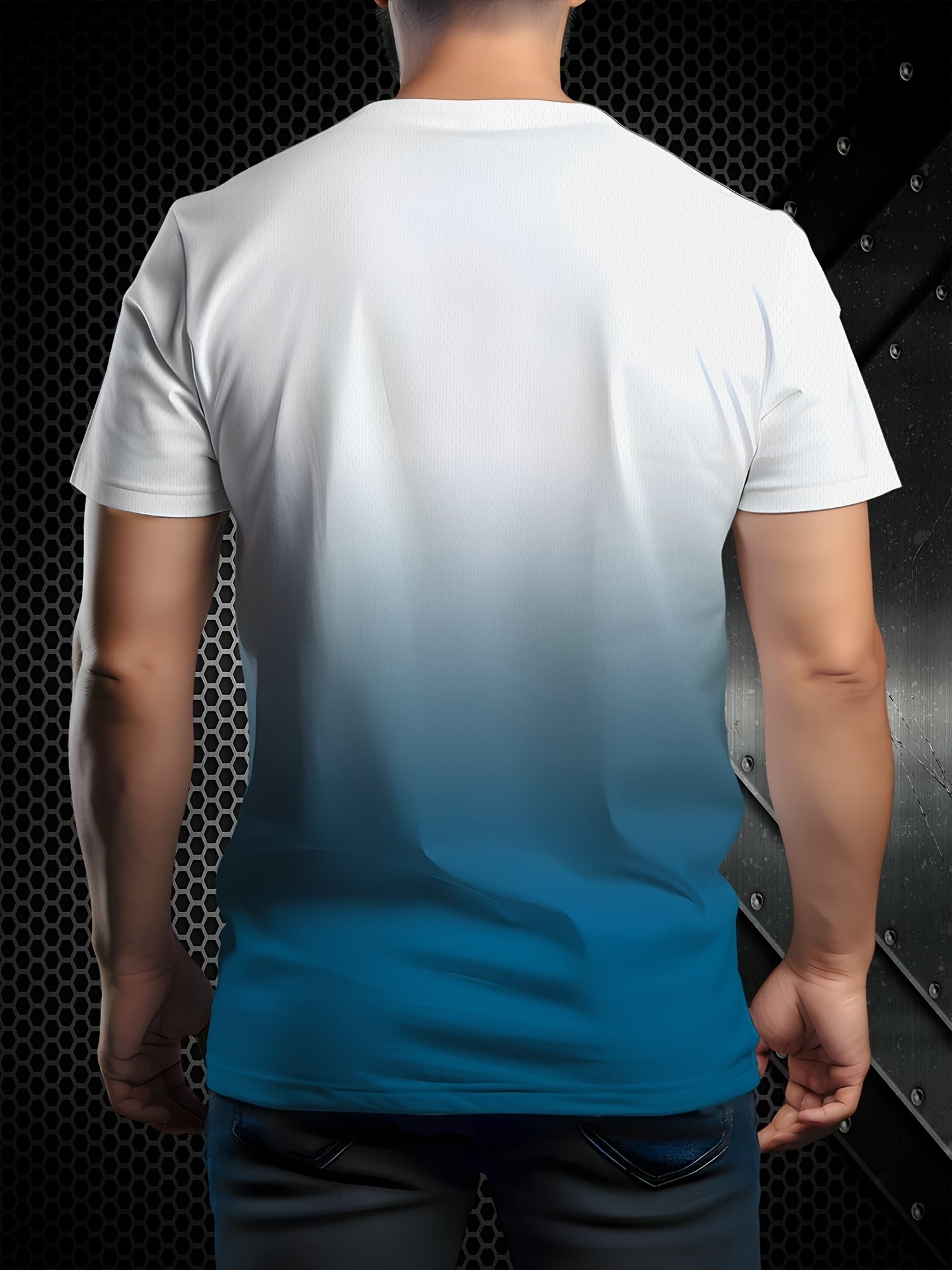 Tashqi erkaklar uchun gradient rangli T-ko'ylak, yumshoq bo'yinli
