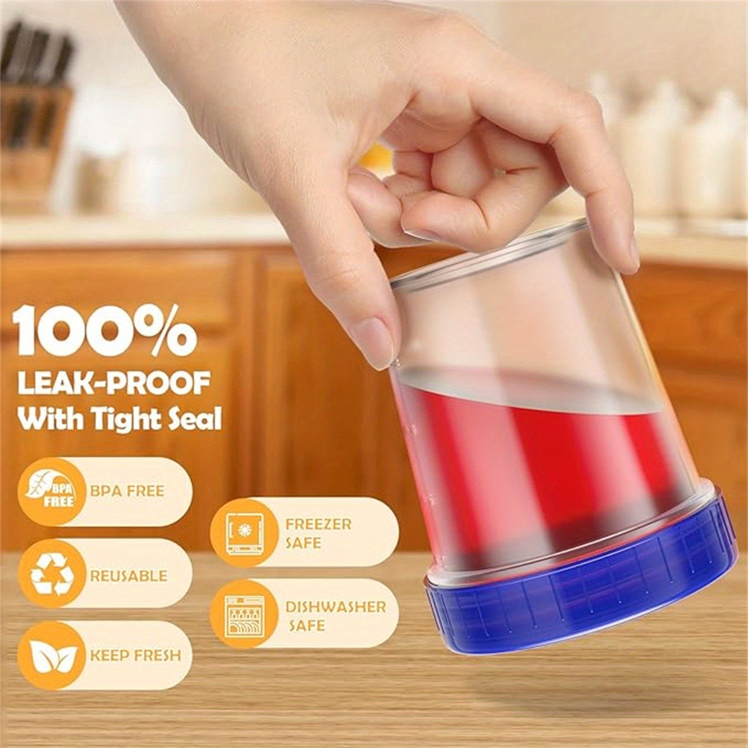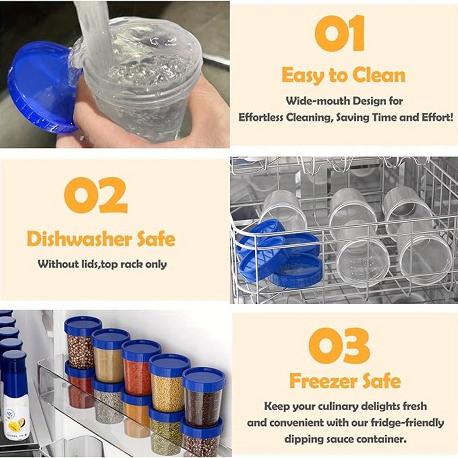 10 dona oqmas salat soslari idishlari, burama qopqoq bilan, har biri 4oz sig‘imga ega - qayta ishlatiladigan, to‘plangan plastikdan tayyorlangan, snacklar va ketchup uchun mukammal - oshxonada muzlatgichda saqlash uchun mos.