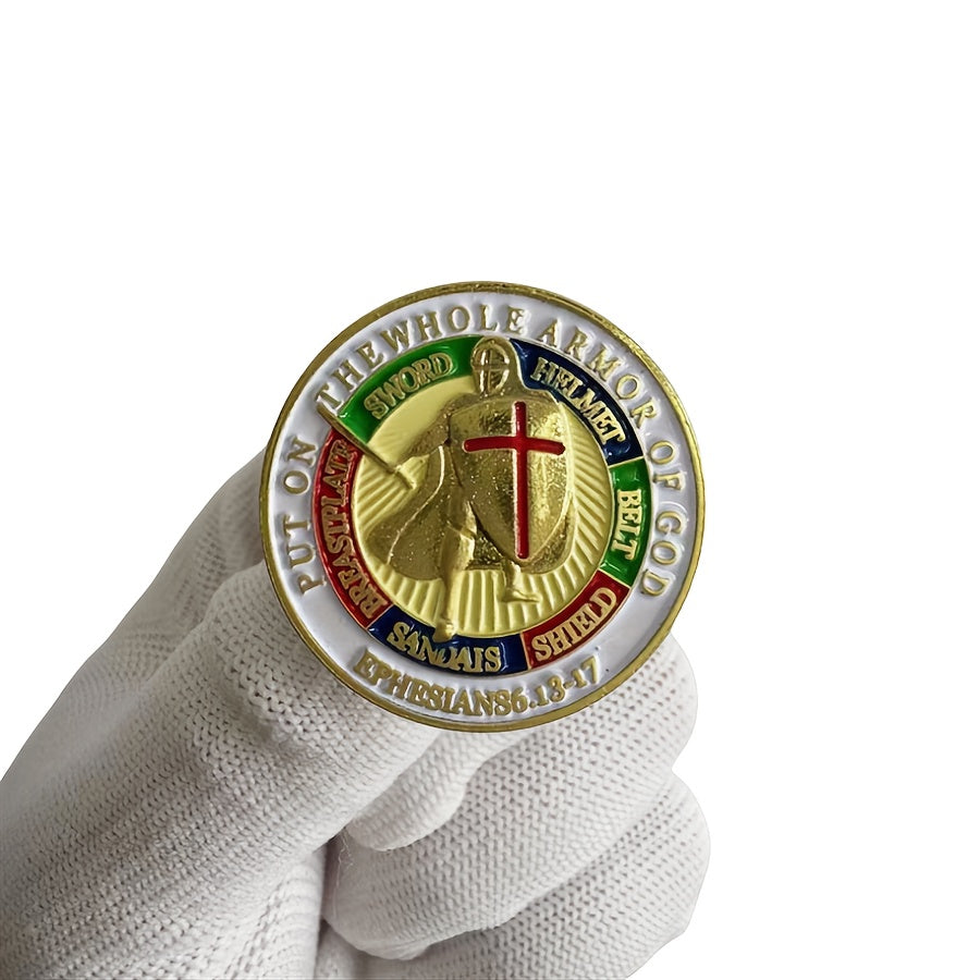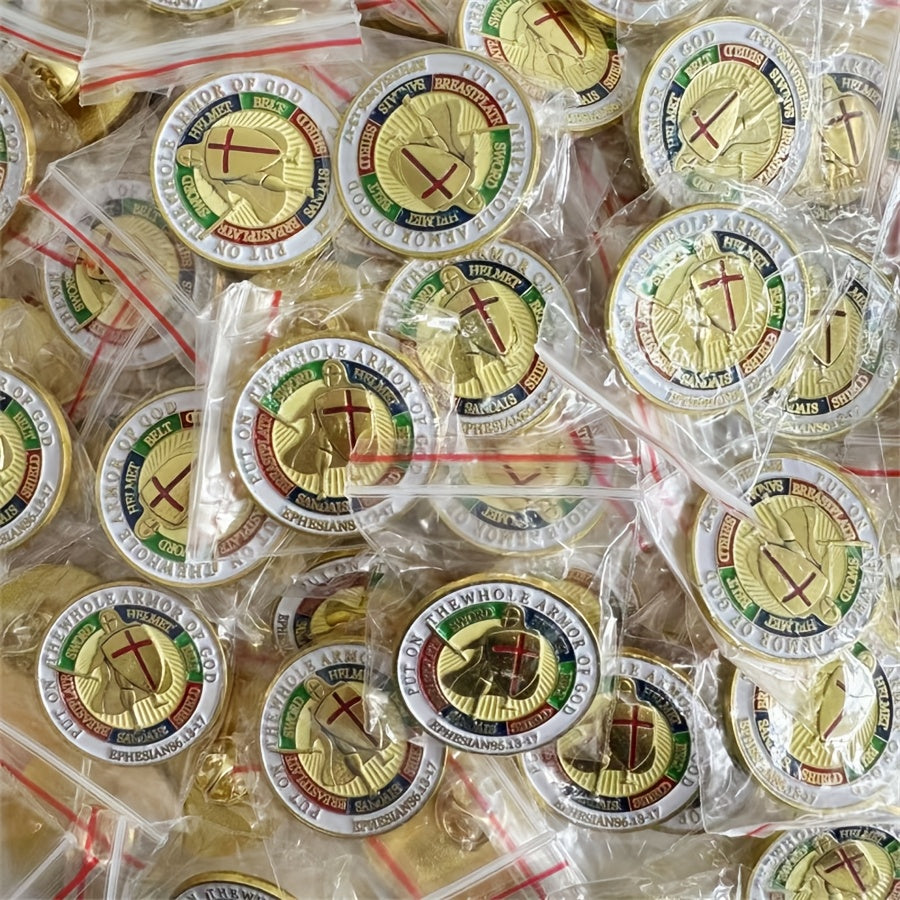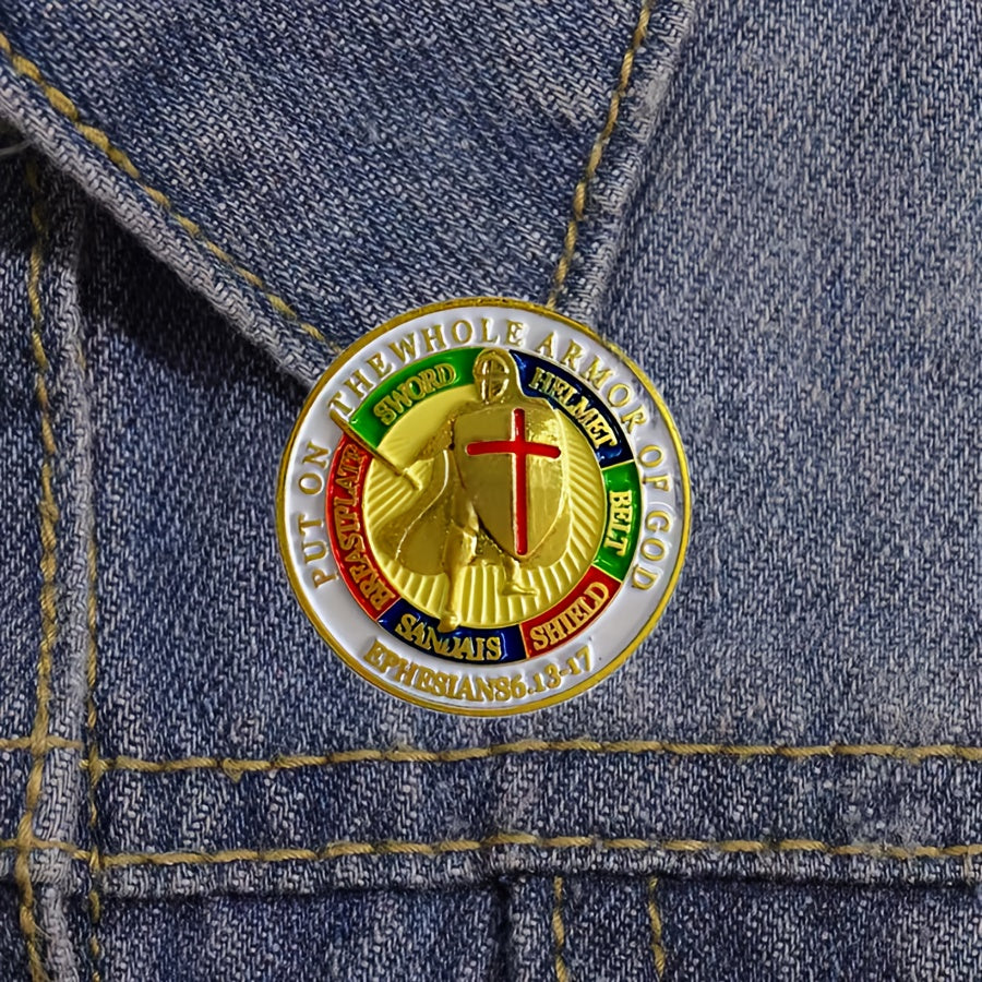 10 ta Christian Brooch Pins to'plami, ilhomlantiruvchi Xudo zirhli alloy zargarlik buyumlari