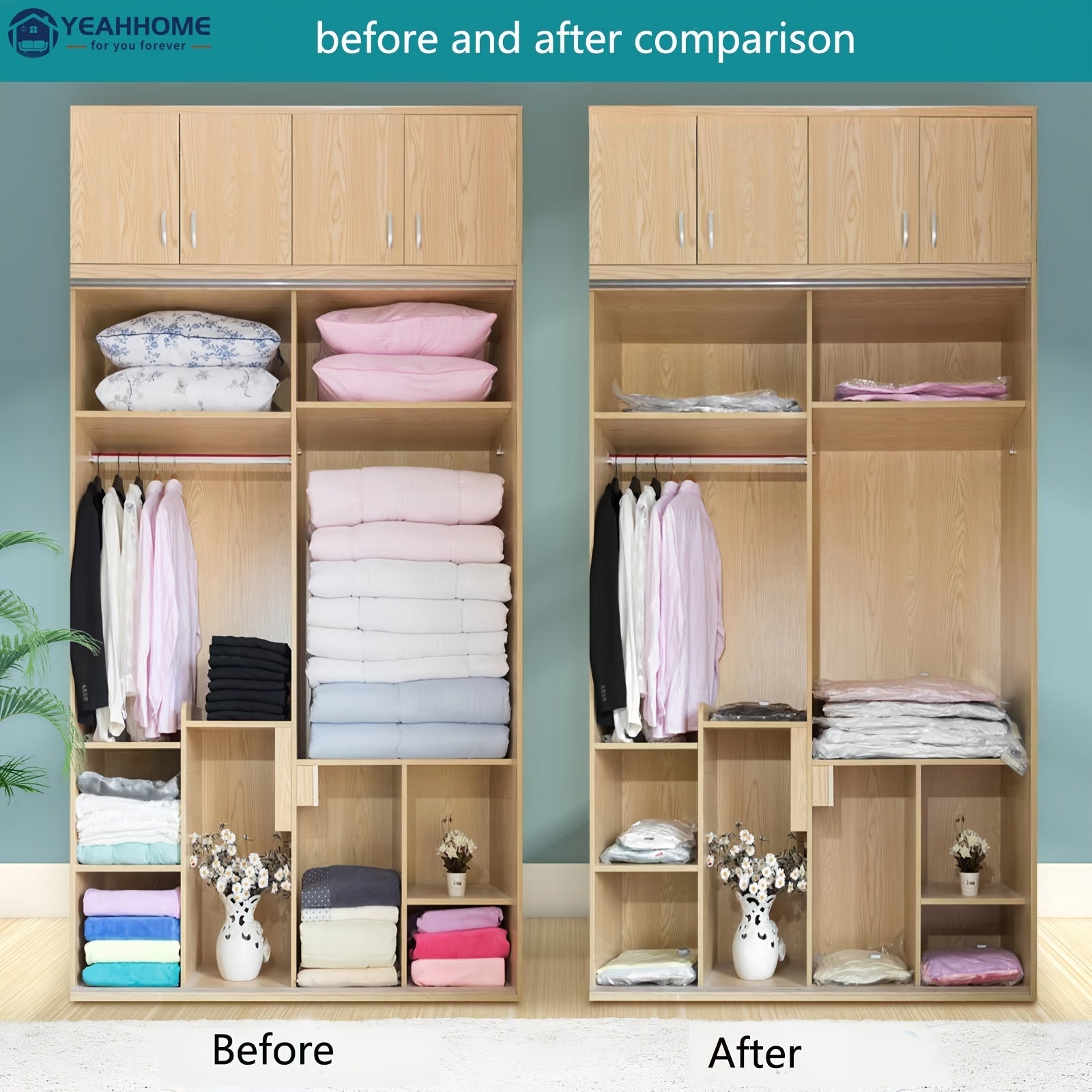 6 ta bo'sh joyni tejovchi vakuum saqlash sumkasi qo'l nasos bilan - kiyimlarni, yostiqlarni, qoplamalarni, ko'rpa-to'shaklarni va to'shaklarni tartibga soling va siqib qo'ying - sayohat va saqlash uchun mukammal, ixcham joyni tejovchi sumkalar