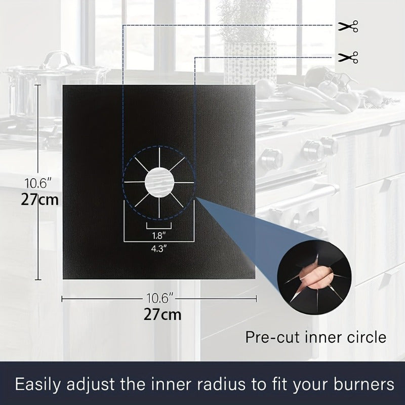 8 dona Naylon Gaz Pechka Qopqog'i, 10.6"x10.6", 0.12mm Qalinlik, Yopishqoq emas, Qayta ishlatiladigan, BPA-siz, Oshpazlik uchun Oson tozalanadigan Qoplamalar