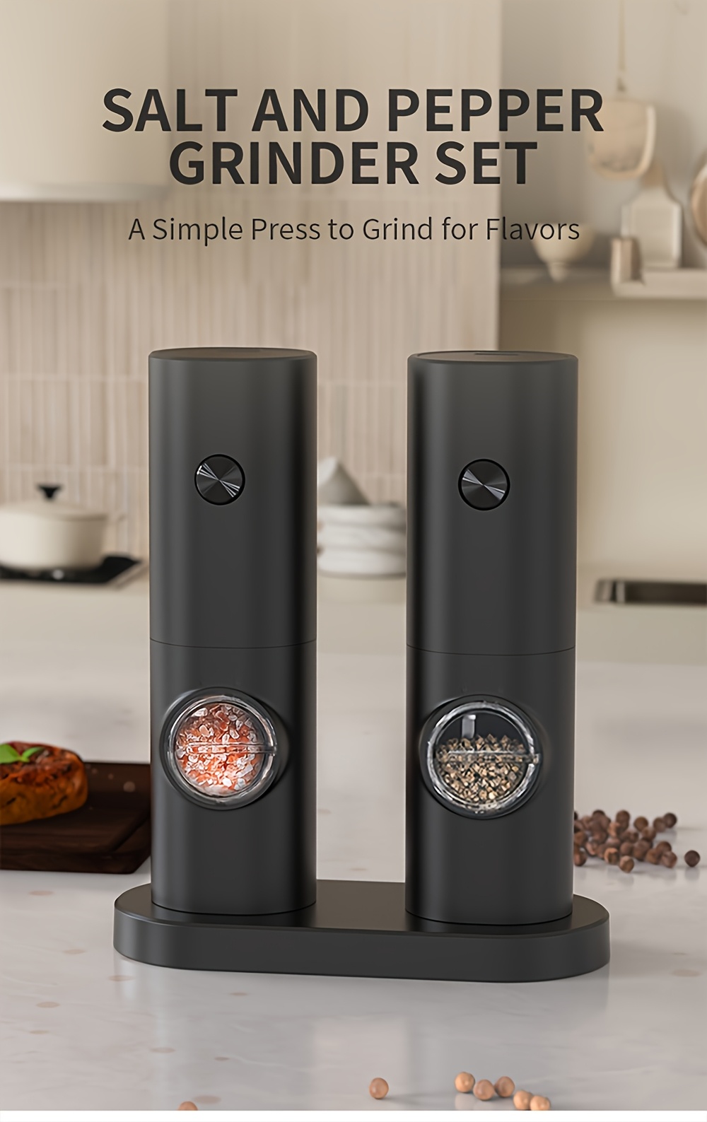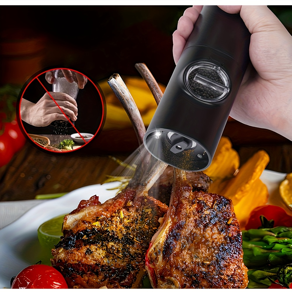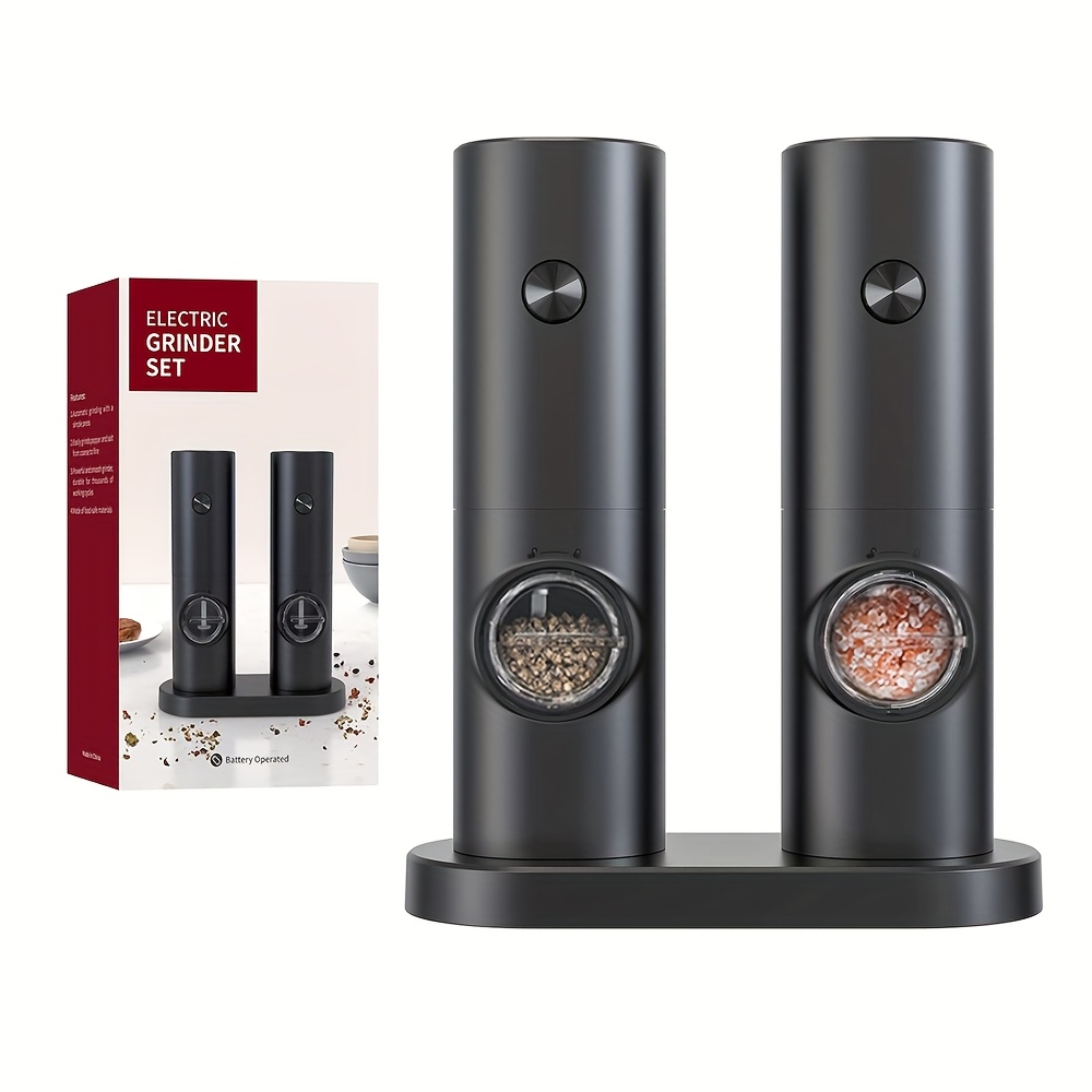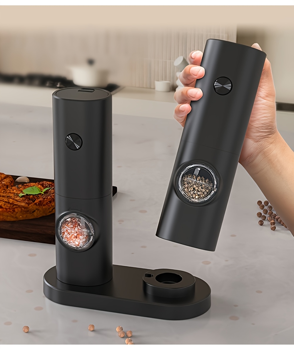 LED chiroq va saqlash bazasi bilan bir qoʻl bilan ishlash uchun elektr tuz va murch maydalagichlar toʻplami