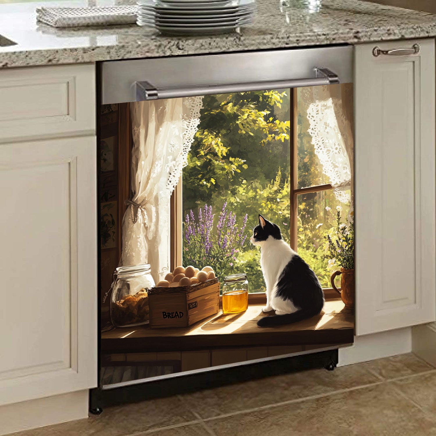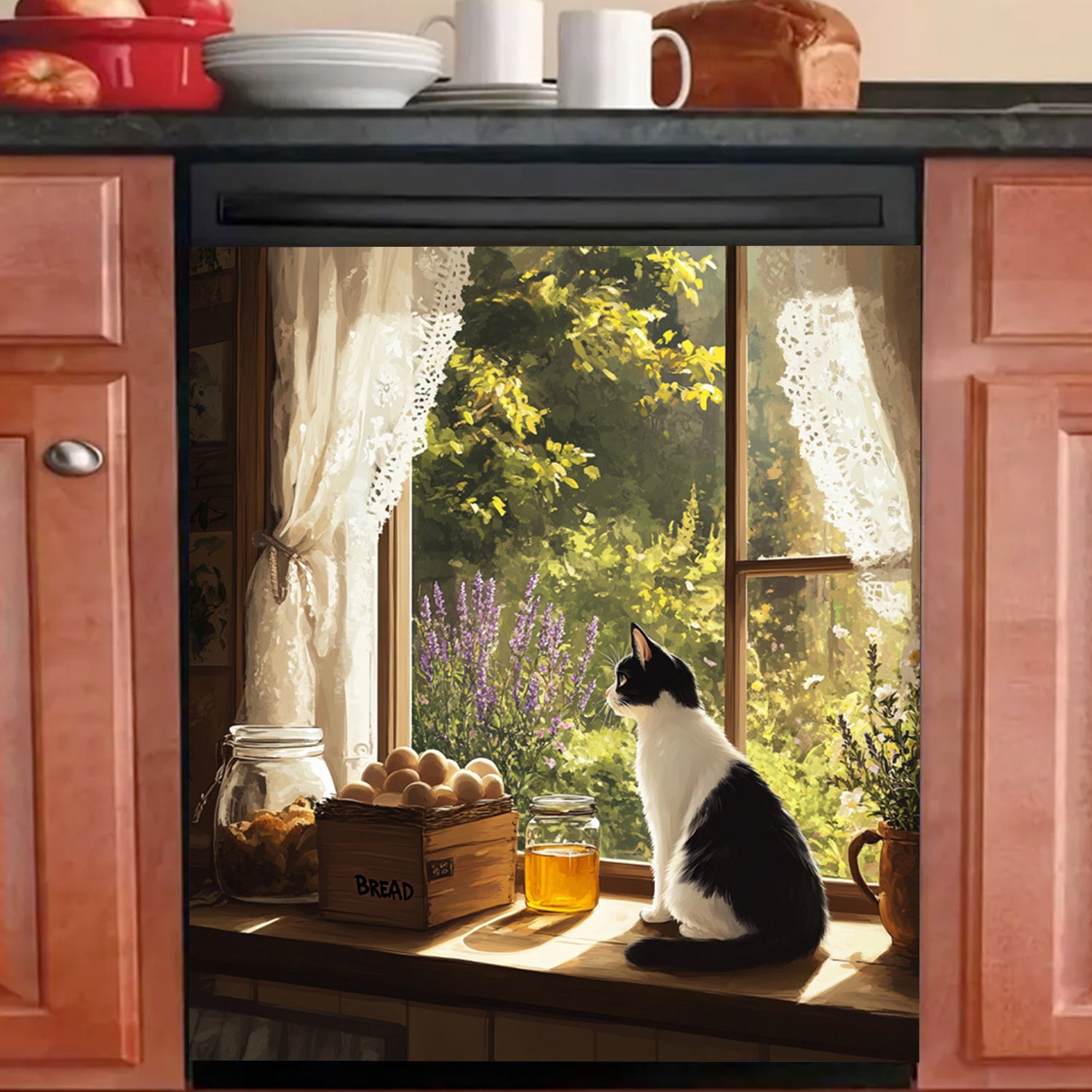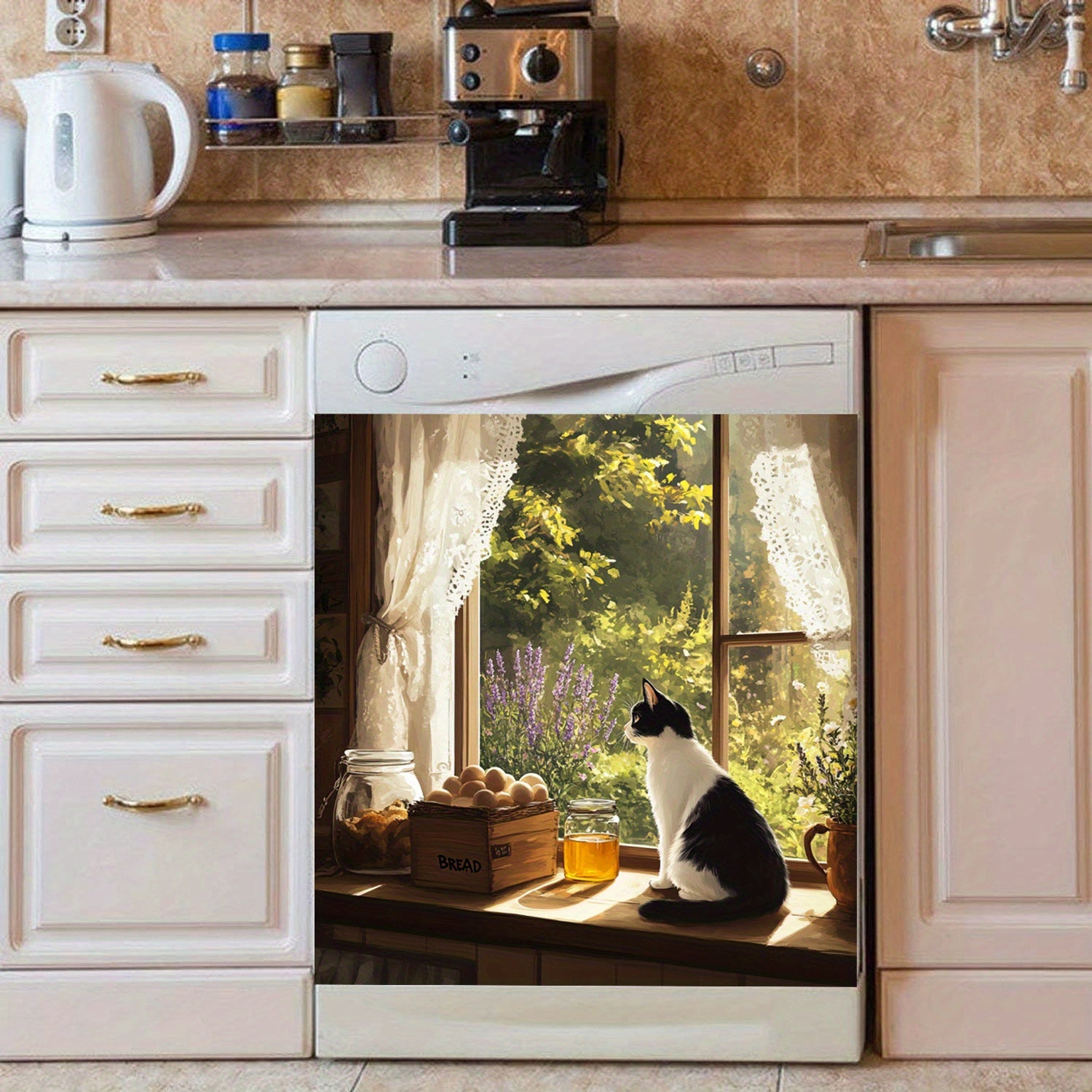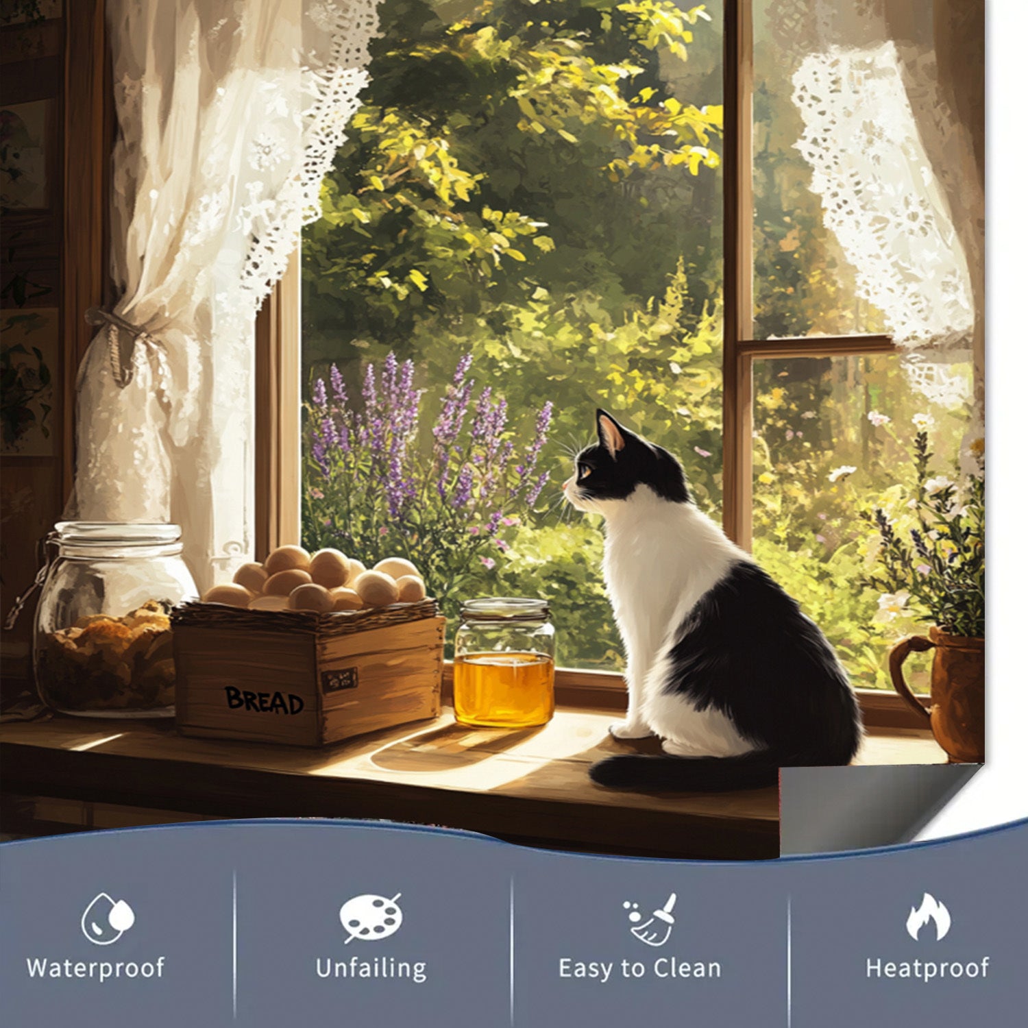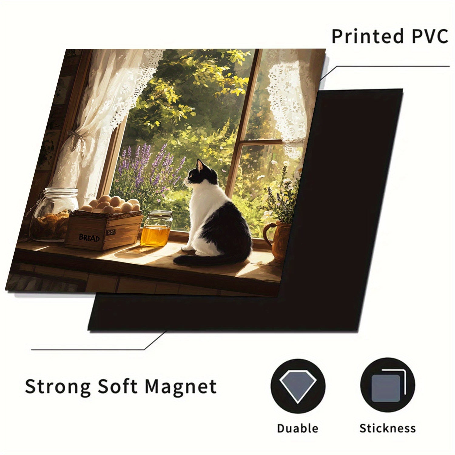 O'rmon uslubidagi idish-tovoq magnit qopqog'i, derazadagi mushuk bilan dizayn, suv o'tkazmaydigan, issiqlikka chidamli, oson qo'llaniladi, oshxona dekoratsiyasi