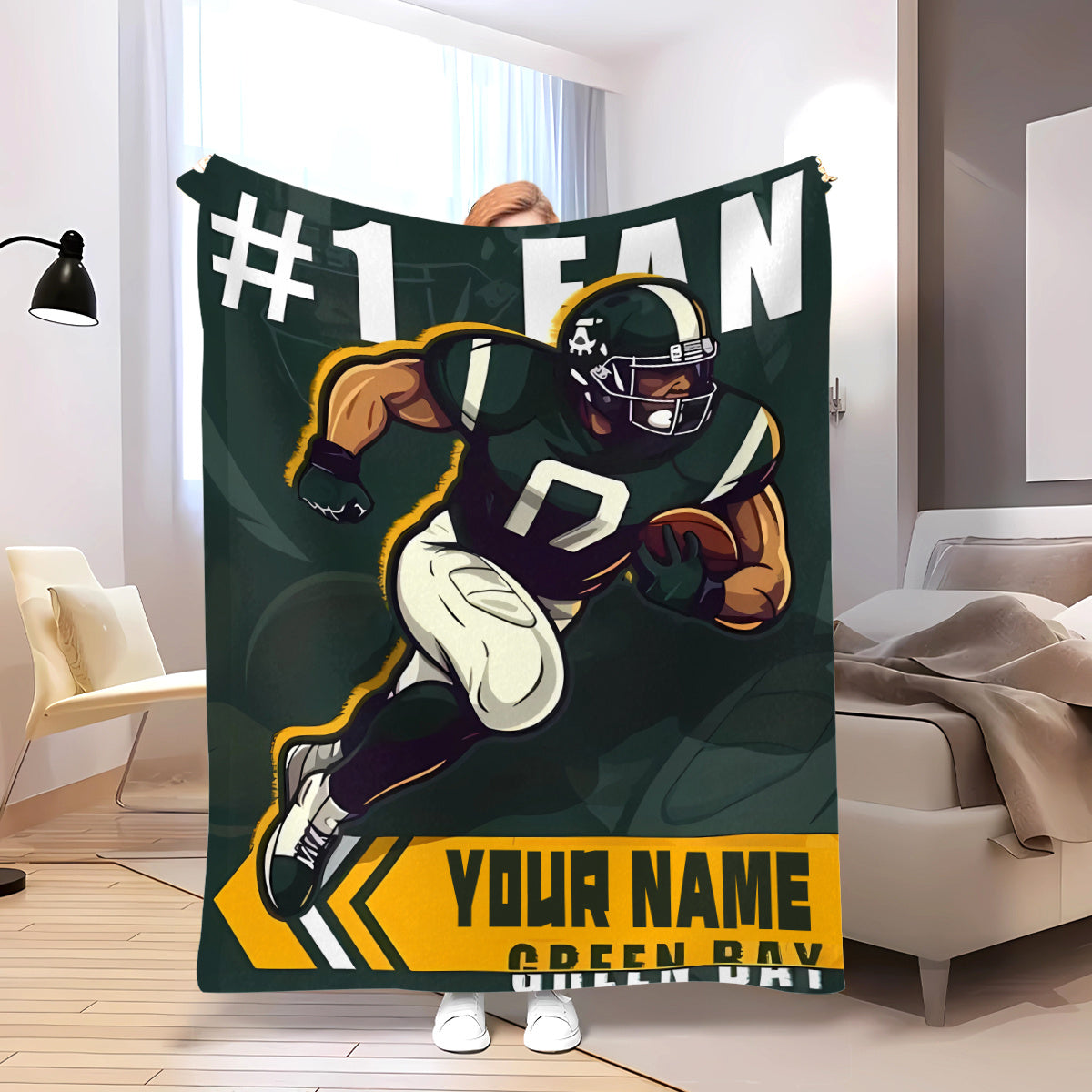 Shaxsiylashtirilgan Green Bay Futbol Jamoasi Flanel Tashqi Ko'rpa - Moslashtiriladigan Ism Tanlovi, Uy va Sayohat Dekorasi uchun Mulkli Yumshoq