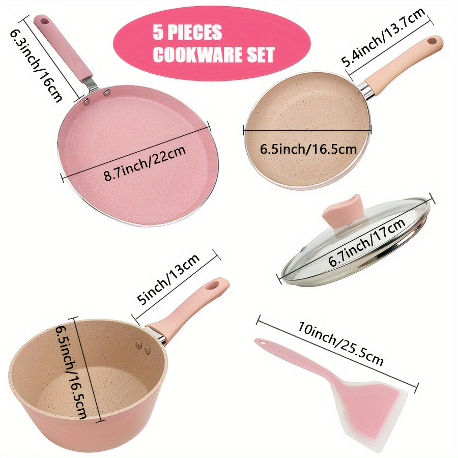 Pushti yopishqoq bo'lmagan alyuminiy idish-to'plami - 5 dona bardoshli, oson tozalanadigan qozonlarni o'z ichiga oladi. Isiga chidamli va sog'lom ovqat tayyorlash uchun idish-tovoq tozalash mashinasida yuvish mumkin.