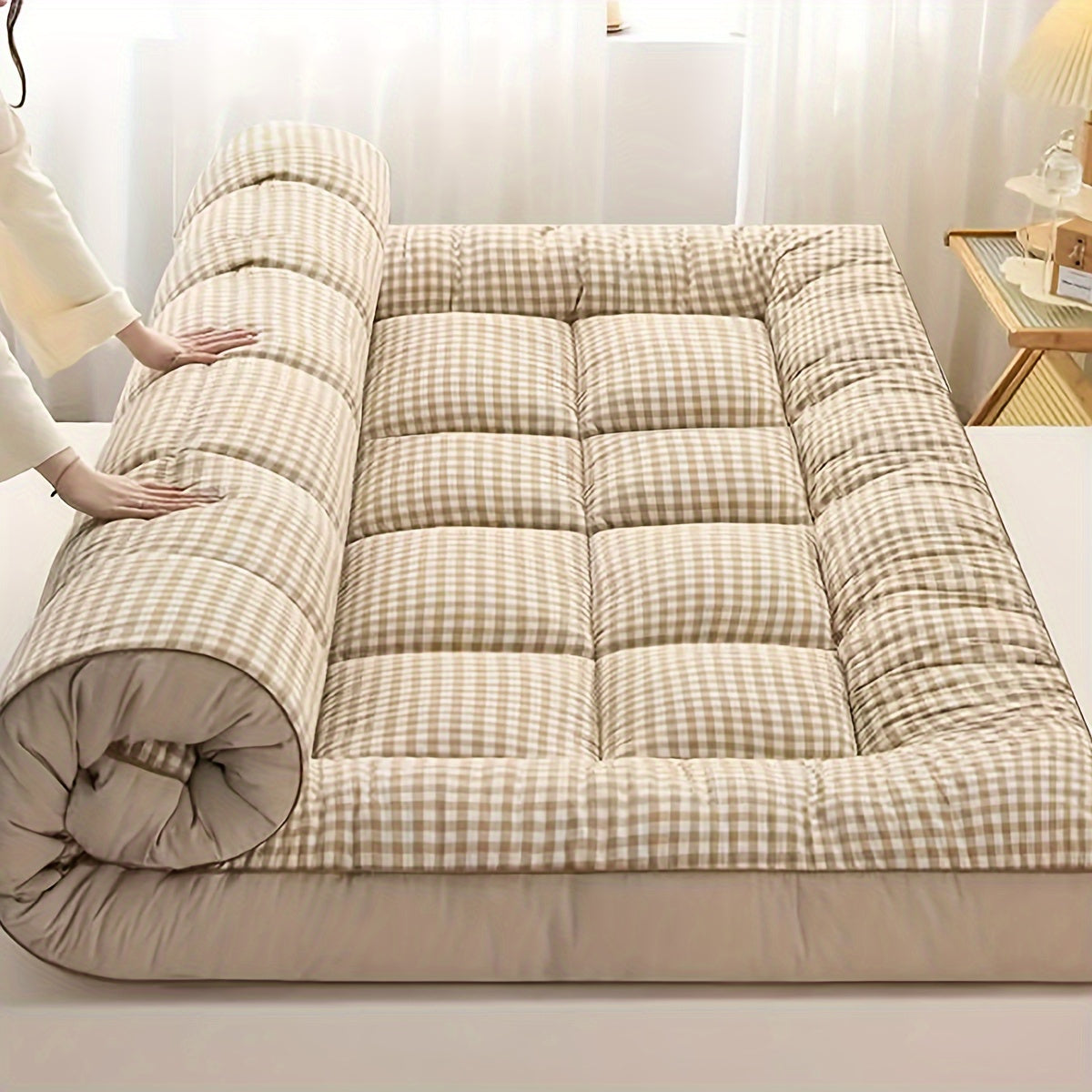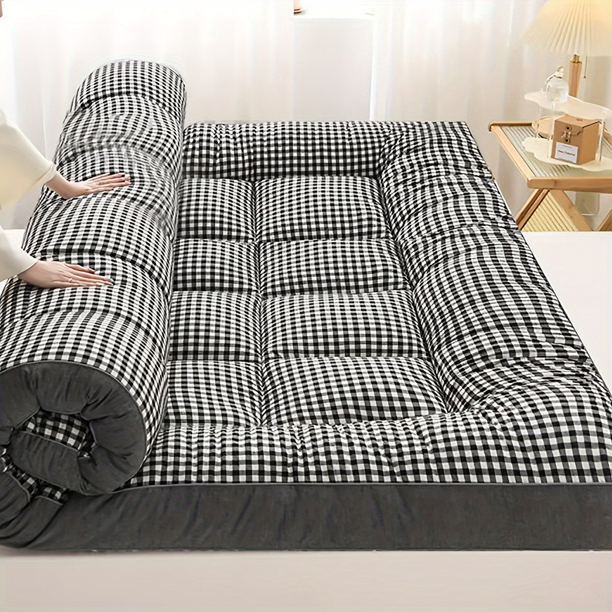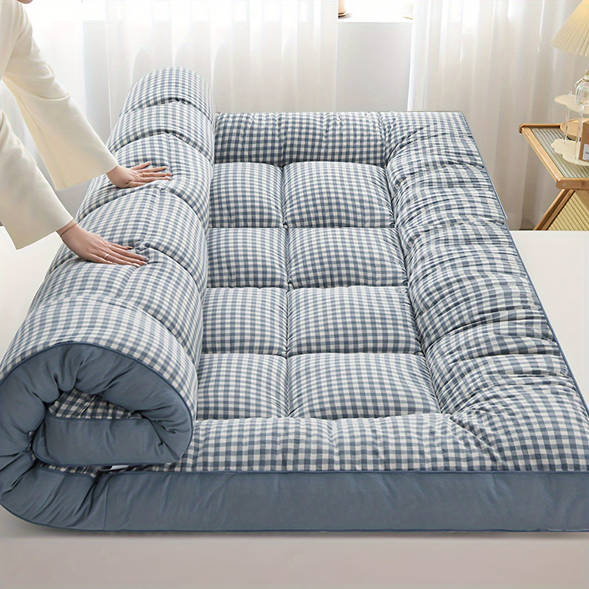 2-shaxsli plaid ko'pikli uyqu matrası, sayohat va turizm uchun, barcha mavsumlar uchun nafas oladigan polyester