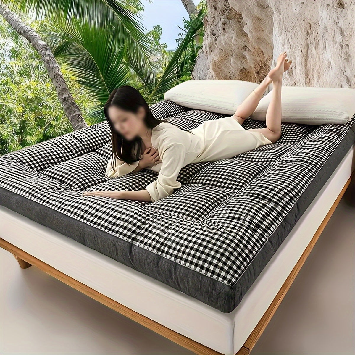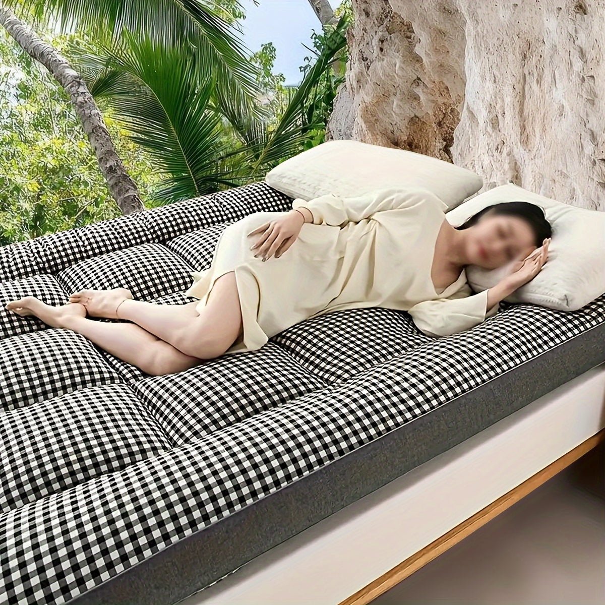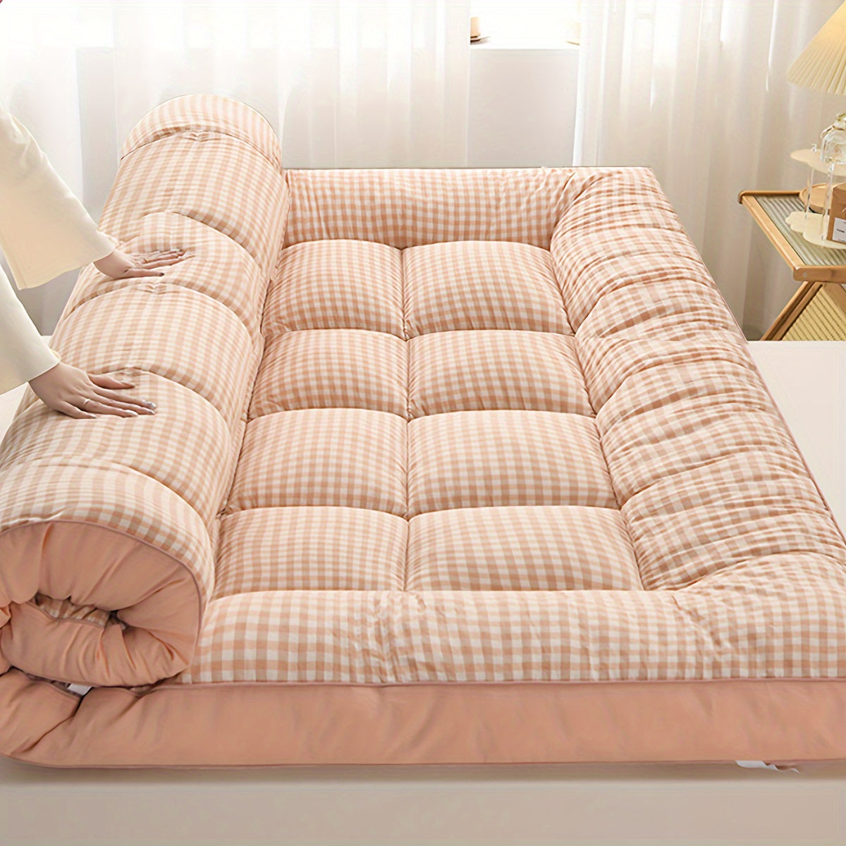 2-shaxsli plaid ko'pikli uyqu matrası, sayohat va turizm uchun, barcha mavsumlar uchun nafas oladigan polyester