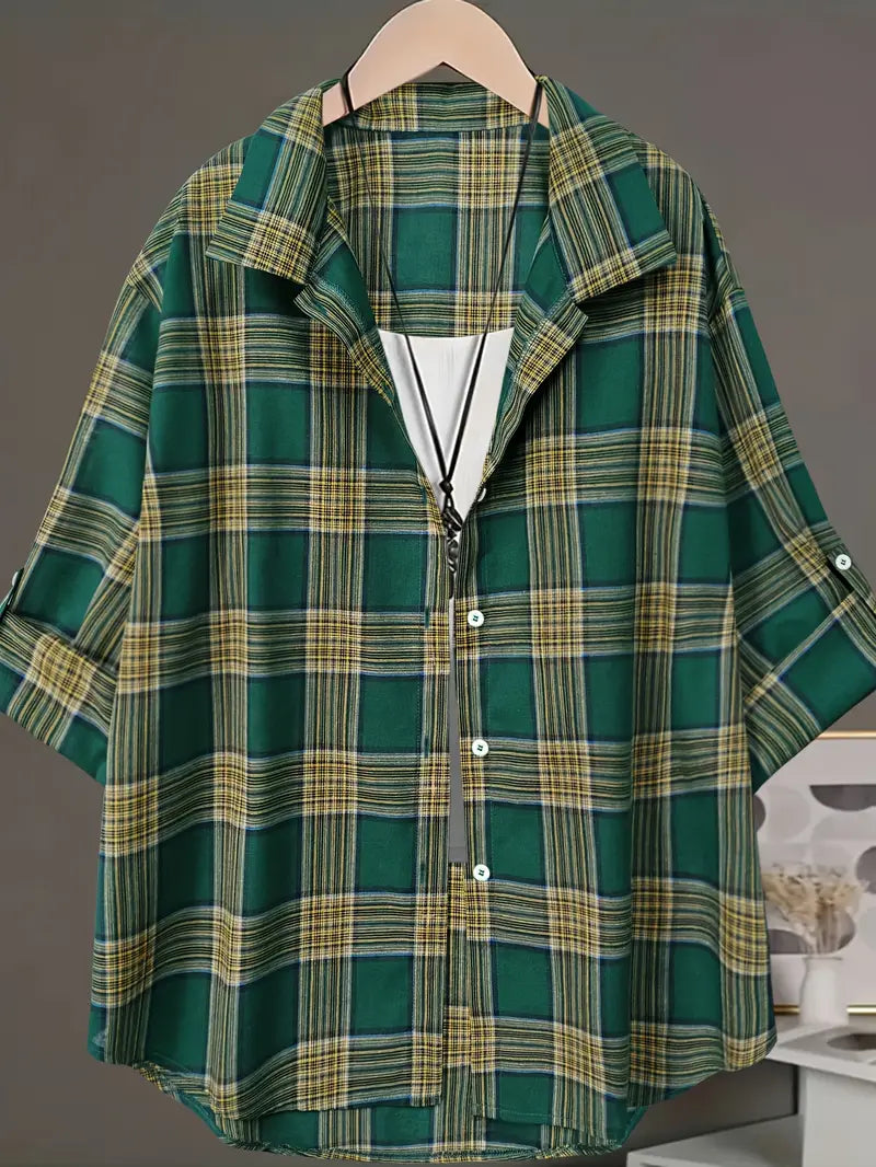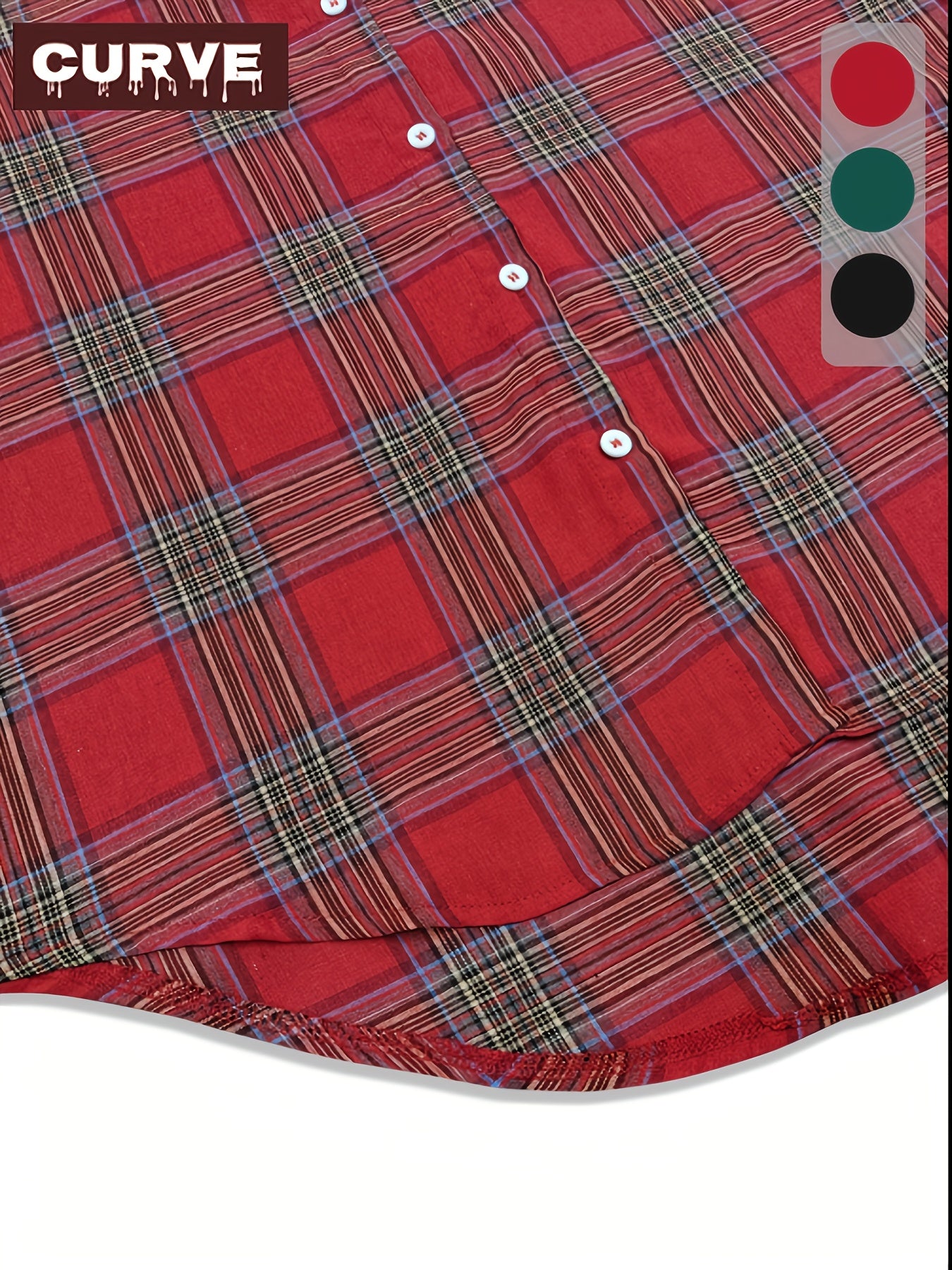 Yoz va bahor mavsumida egri ayollar uchun plitka naqshli uzun qo'lqopli yengli ko'ylak, katta o'lchamlarda.