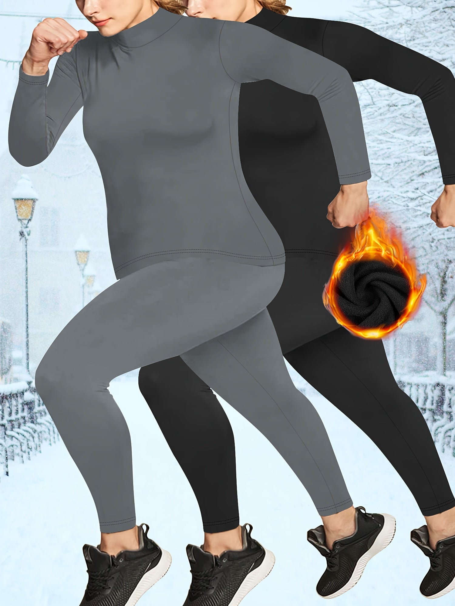 Plus o'lcham kuz qish fleece issiq ichki kiyim to'plami bo'yin issiq qilgich bilan