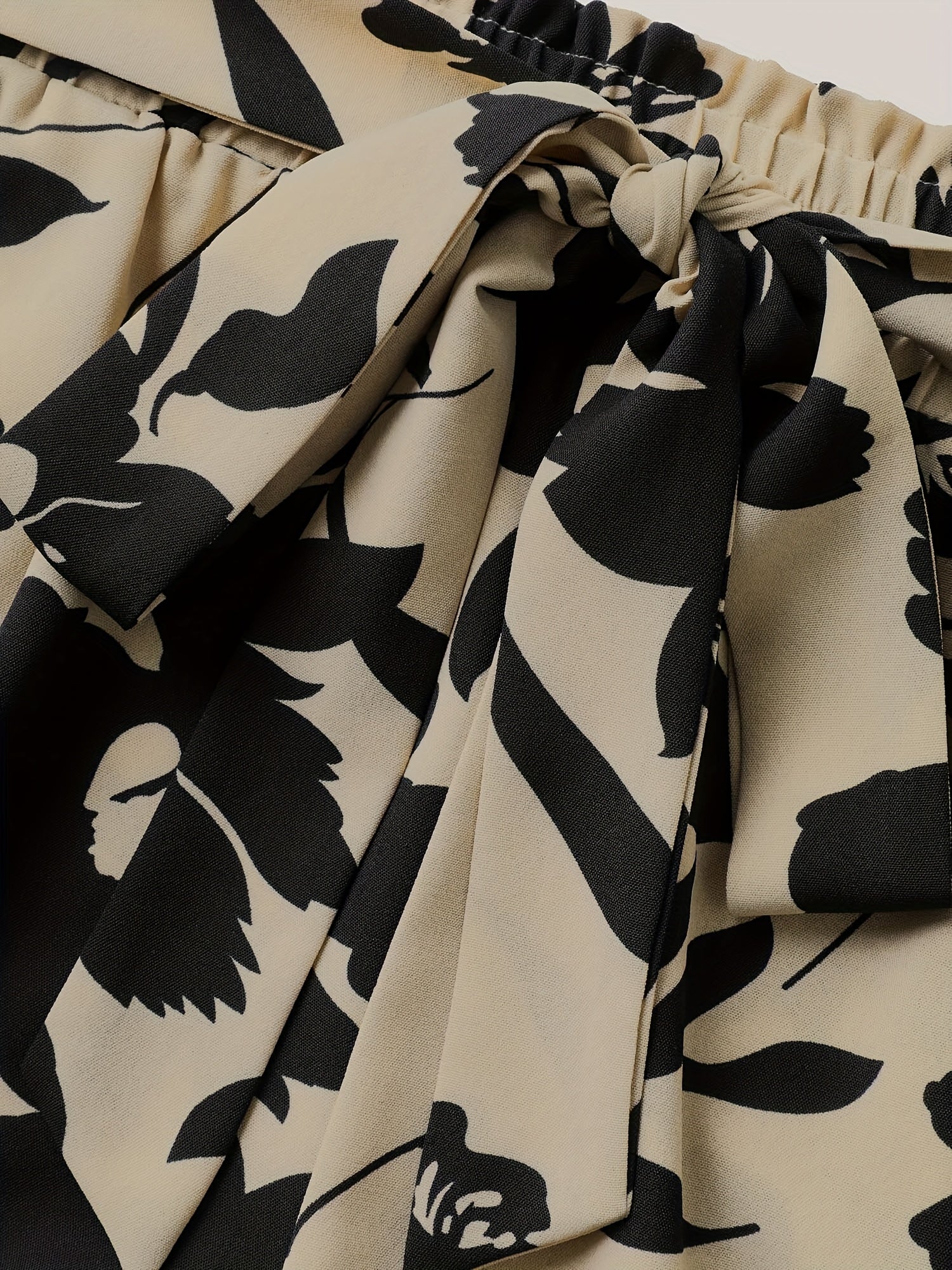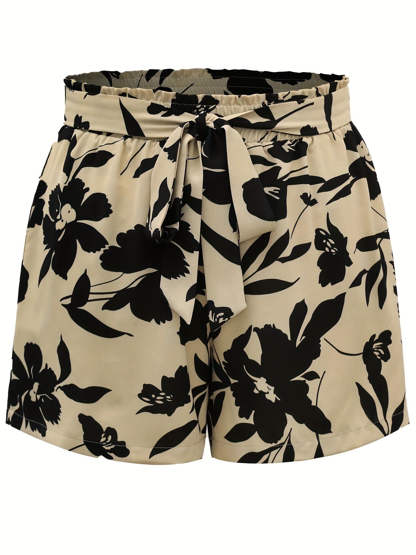 Plus o'lchamli gul bosmaqli shortlar elastik bel, kundalik yozgi bej va qora
