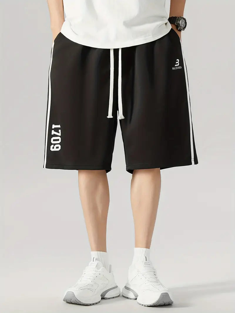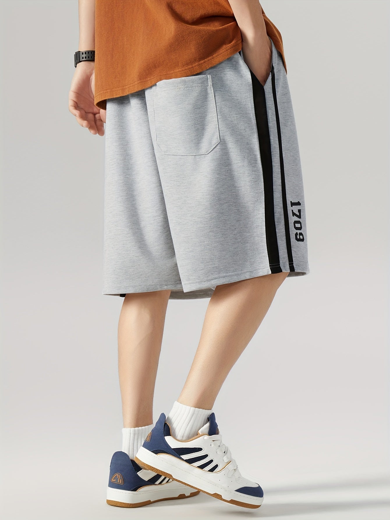 Katta o'lchamdagi erkaklar uchun tasodifiy shortlar - geometrik naqshga ega, polyester va elastan aralashmasidan tayyorlangan, tez quriydigan va keng kesimli basketbol shortlari, mashinada yuvish mumkin.