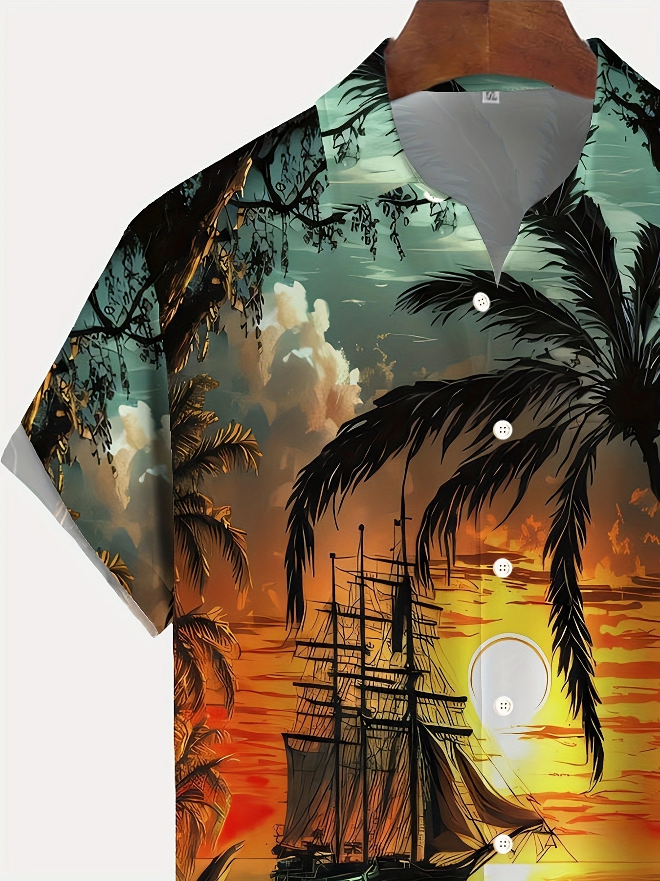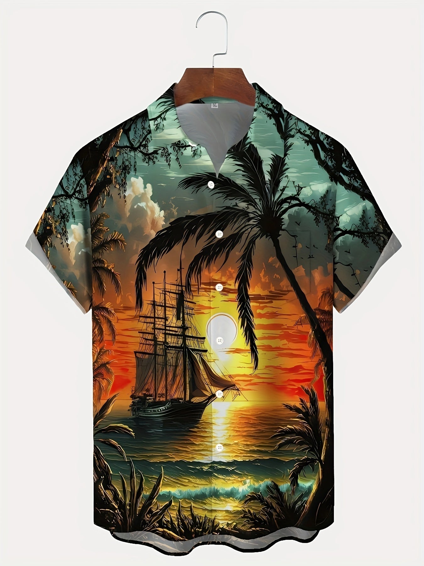 Katta va baland erkaklar uchun yozgi grafik printli ko'ylak