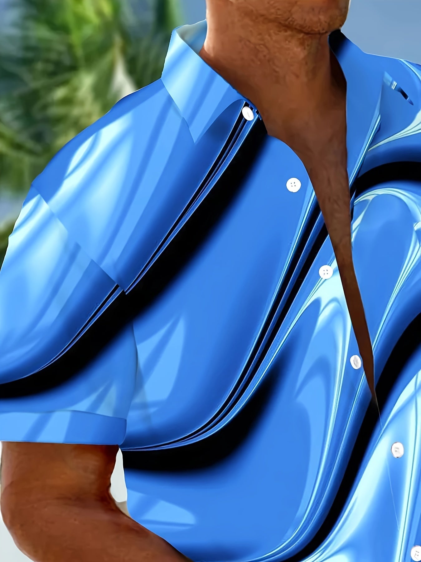 Katta o'lchamdagi erkaklar uchun Gava 3D bosma qisqa yengli ko'ylak - Ta'til uslubi, zamonaviy yozgi kiyim