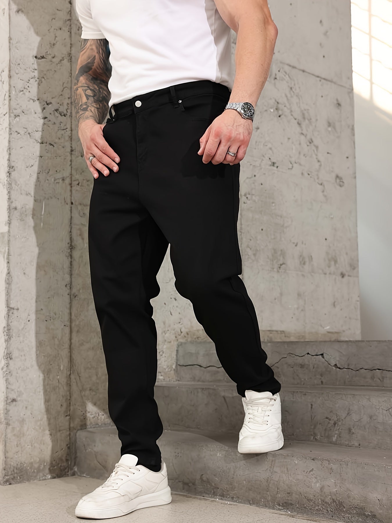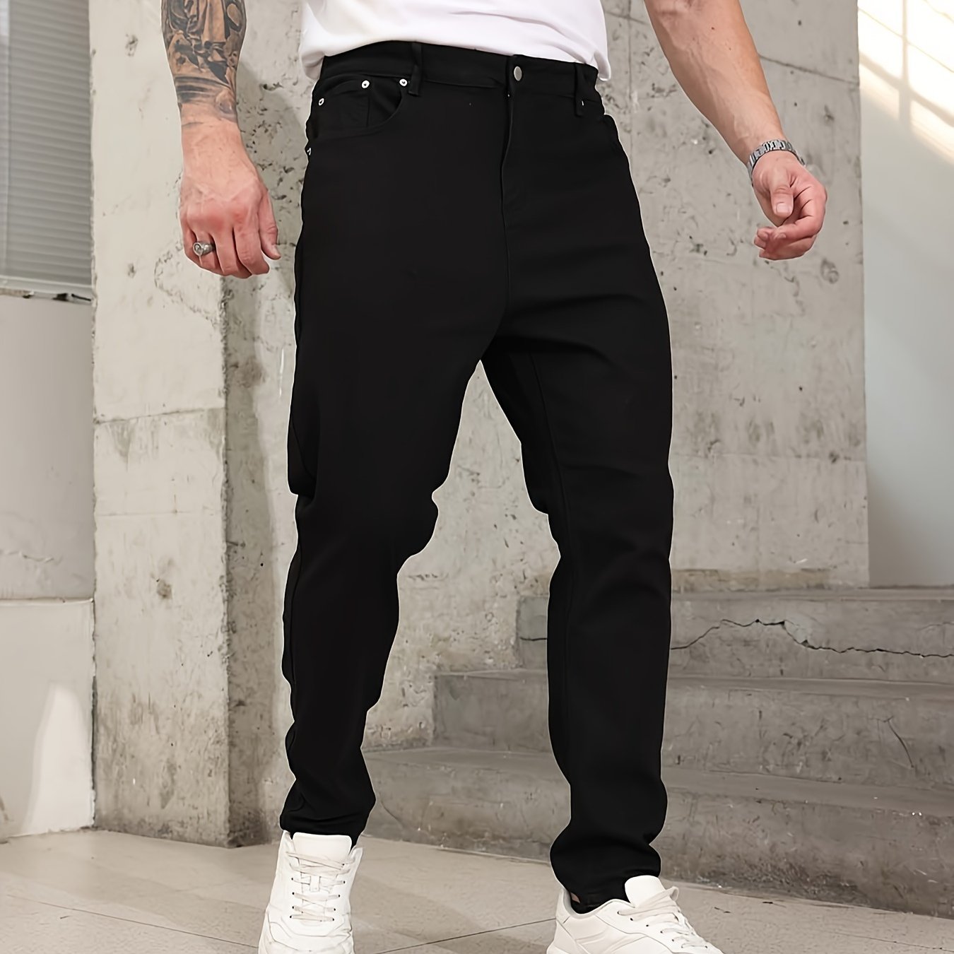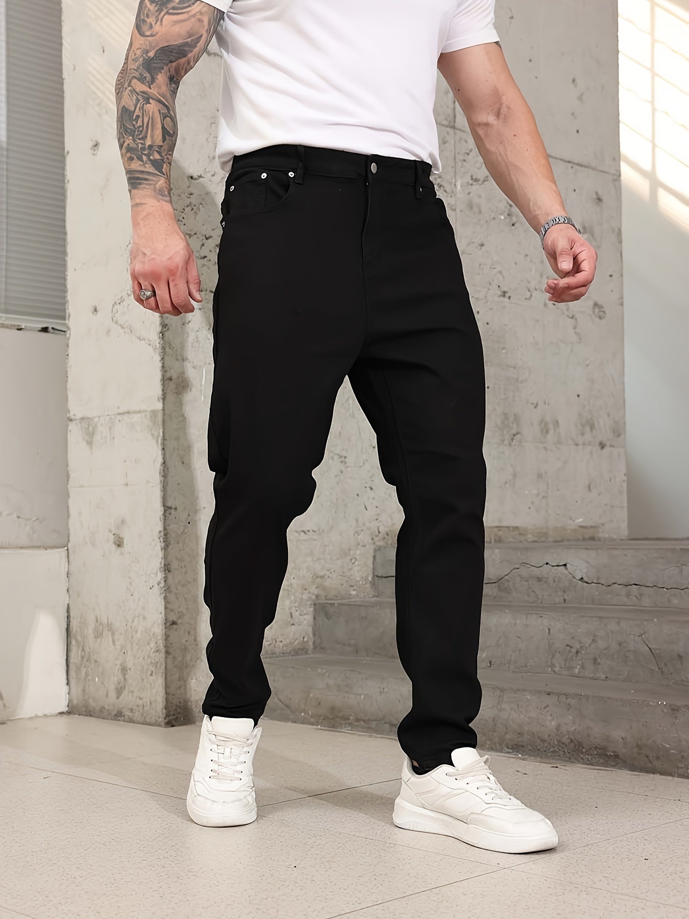 Qora rangdagi Plus Size erkaklar uchun tor jinsi shimlar, cho'ziluvchan, qulay moslashuv, cho'ntaklar va mustahkamlik bilan. | Mashina yuvish mumkin, barcha mavsumlar uchun kiyish