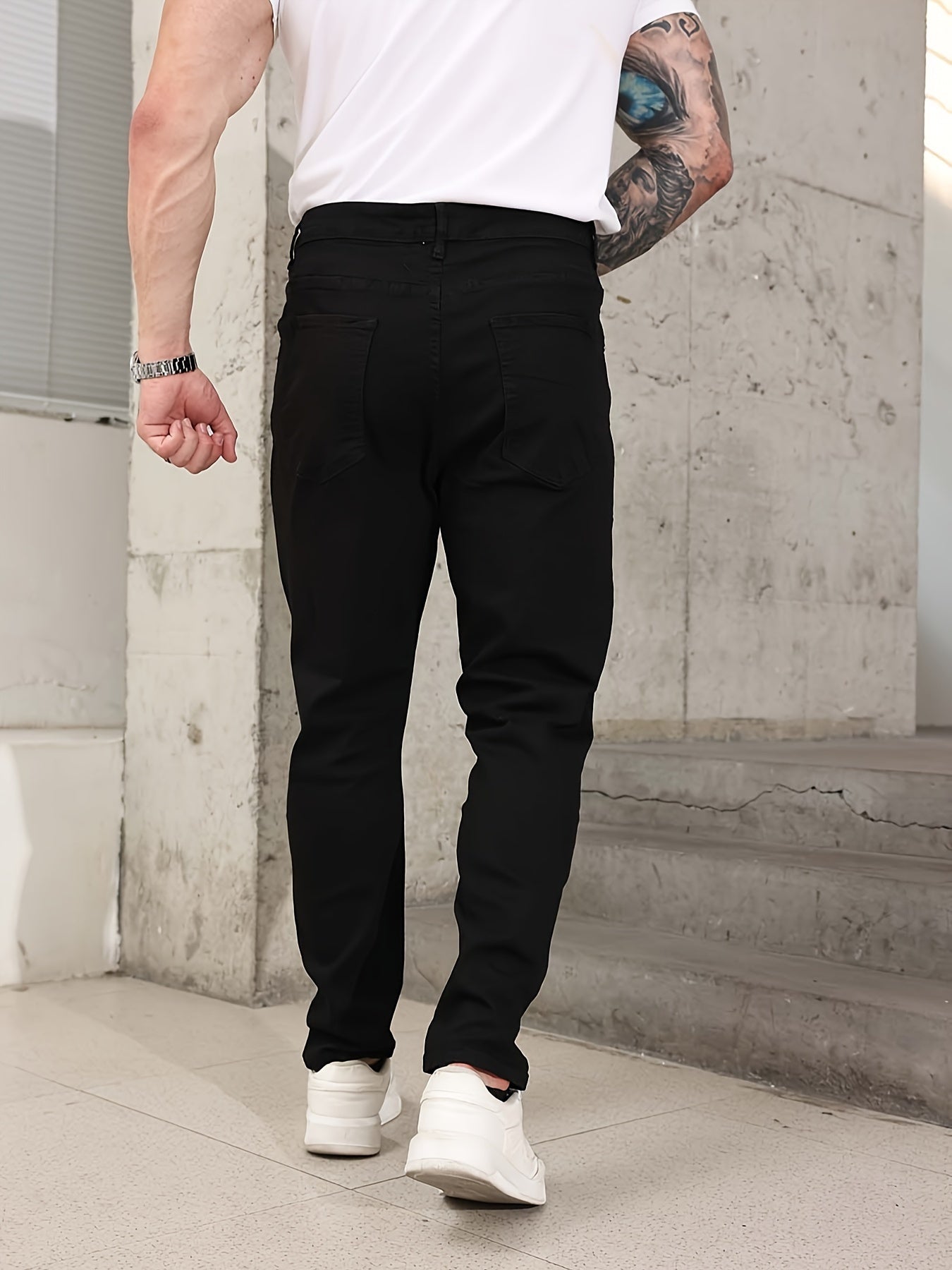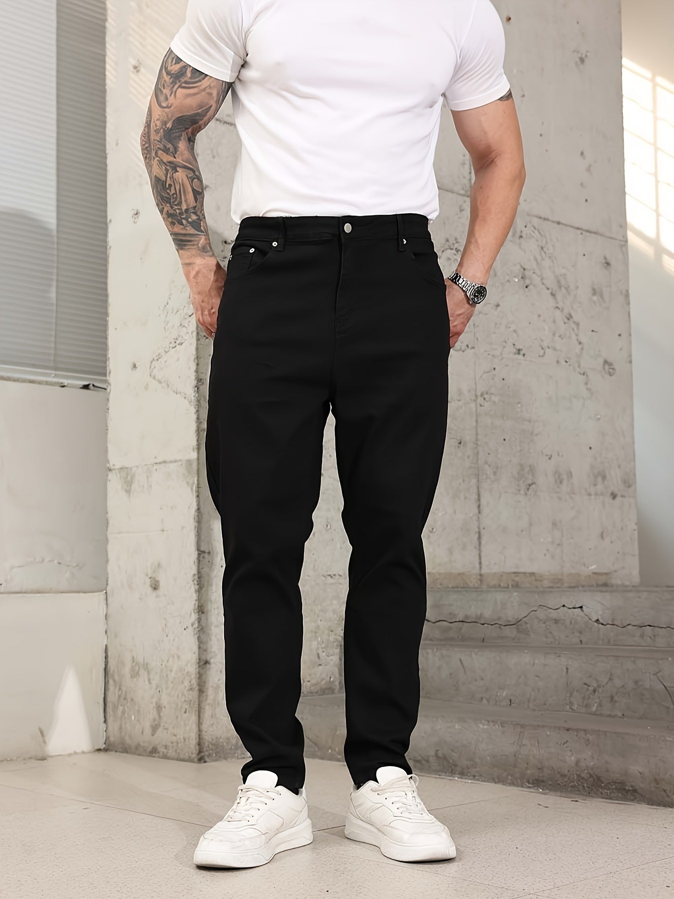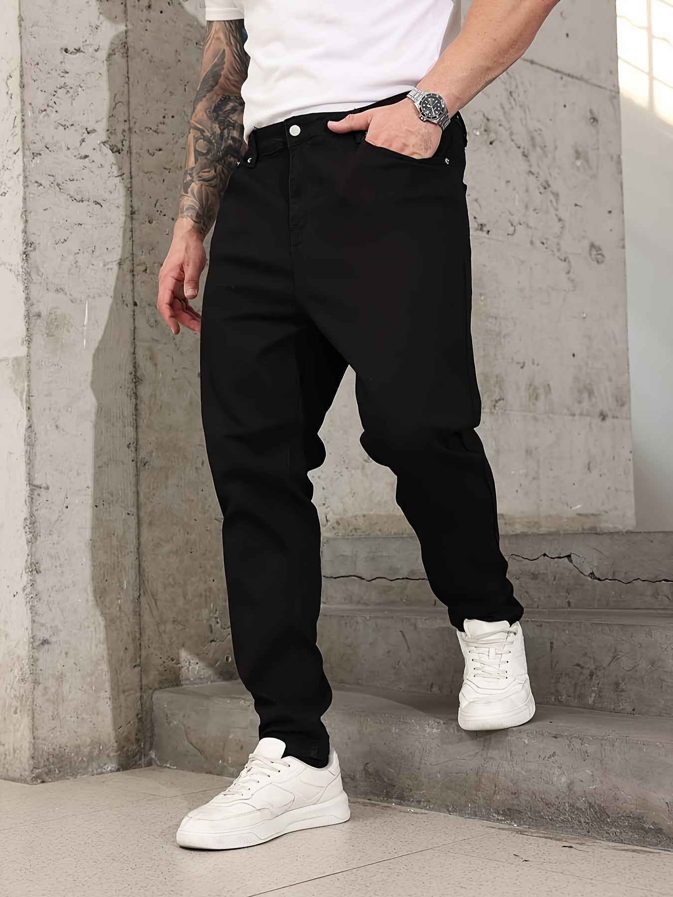 Qora rangdagi Plus Size erkaklar uchun tor jinsi shimlar, cho'ziluvchan, qulay moslashuv, cho'ntaklar va mustahkamlik bilan. | Mashina yuvish mumkin, barcha mavsumlar uchun kiyish