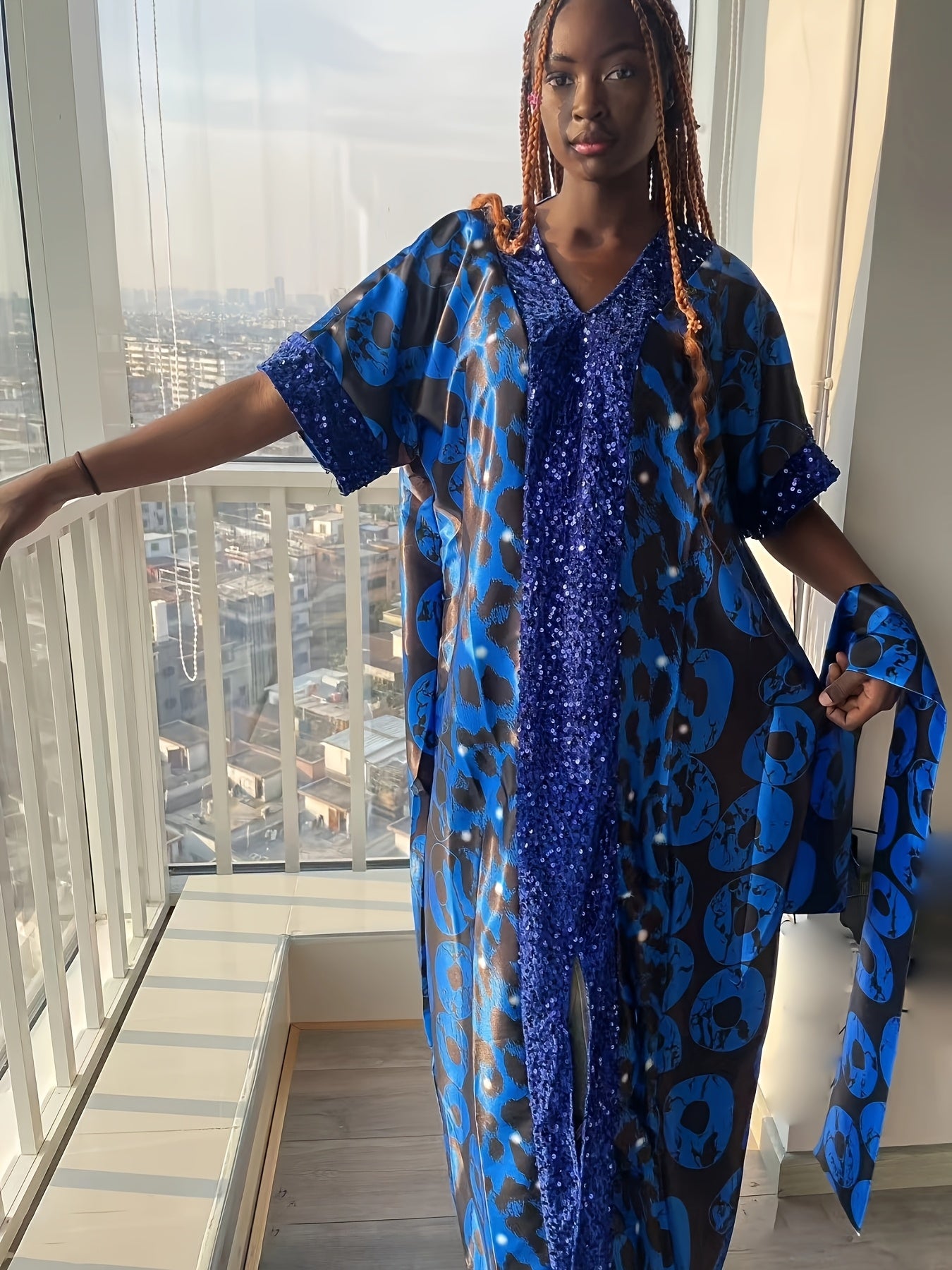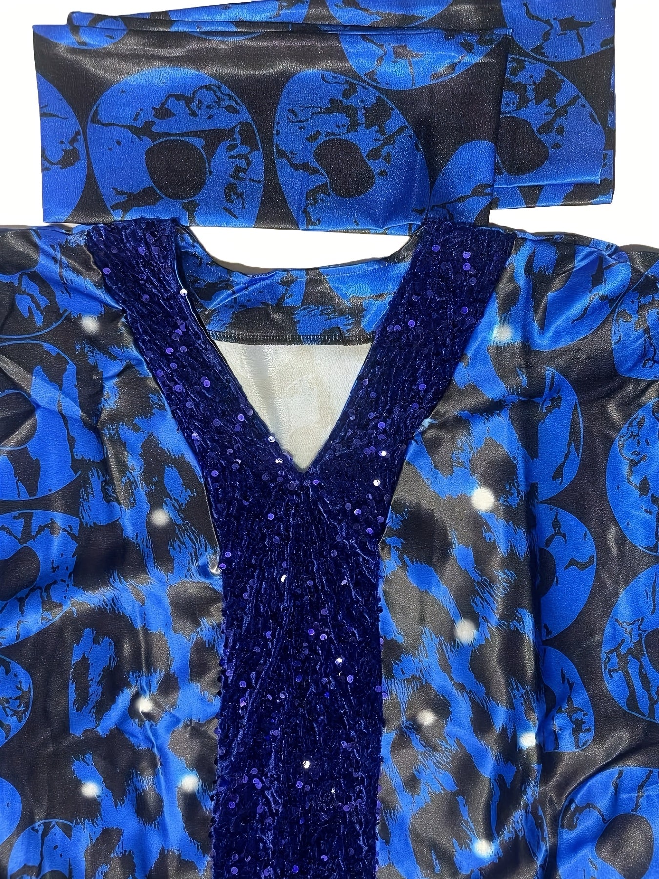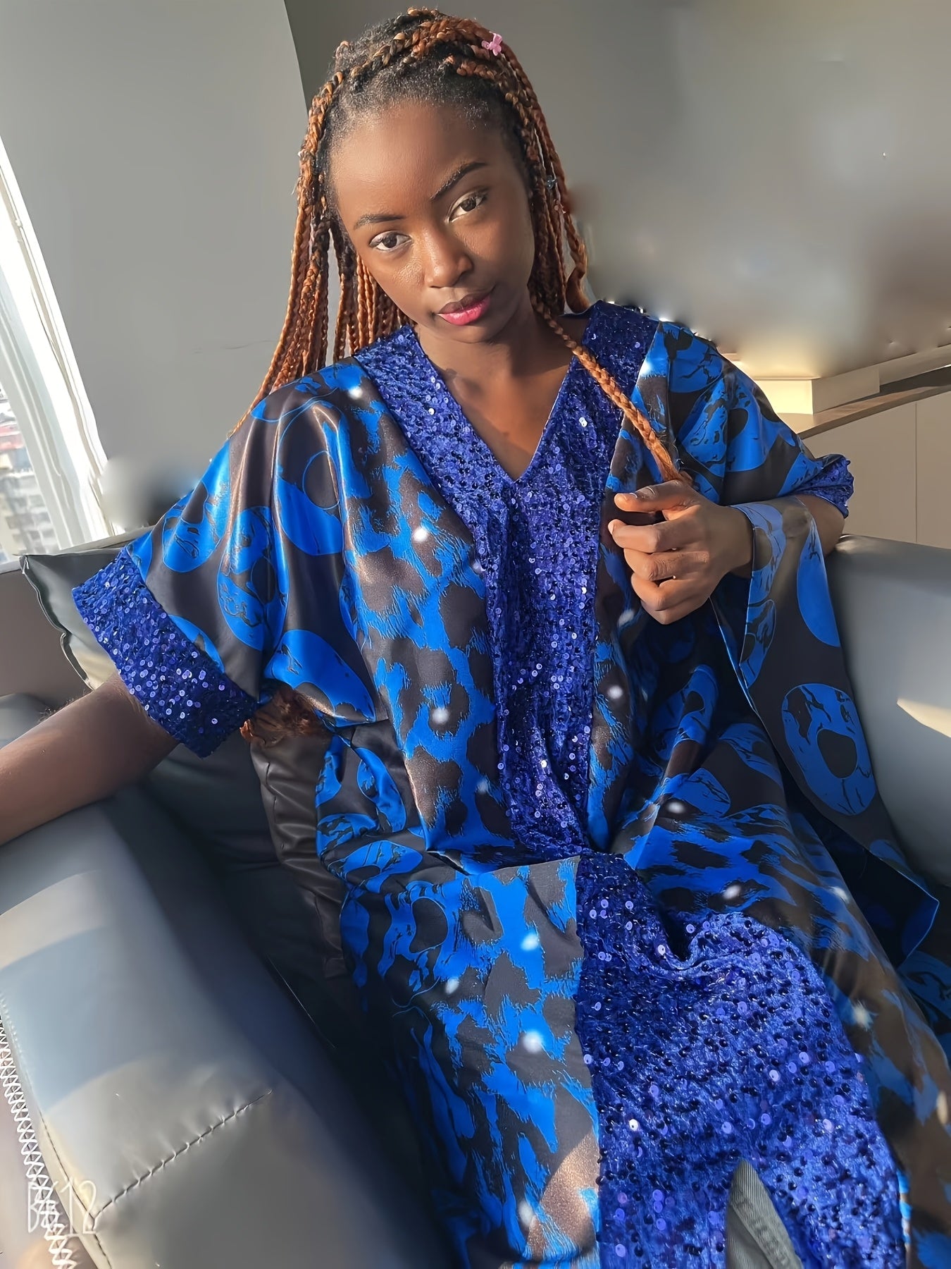 Plus o'lchamda bosma sequin kiyiwi, batwing qo'llari va V-shaklidagi bo'yin uchun ayollar uchun