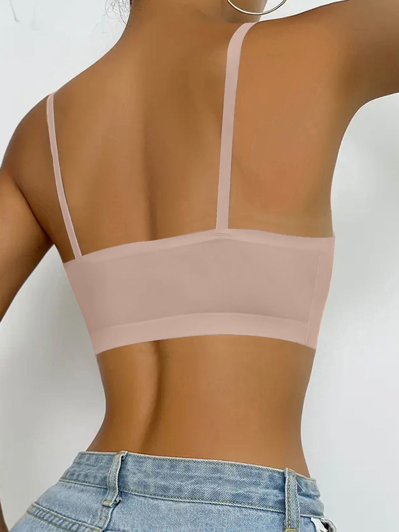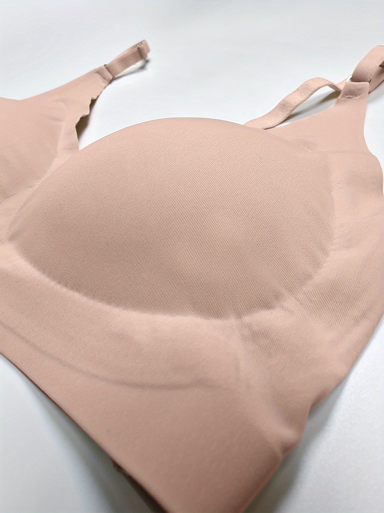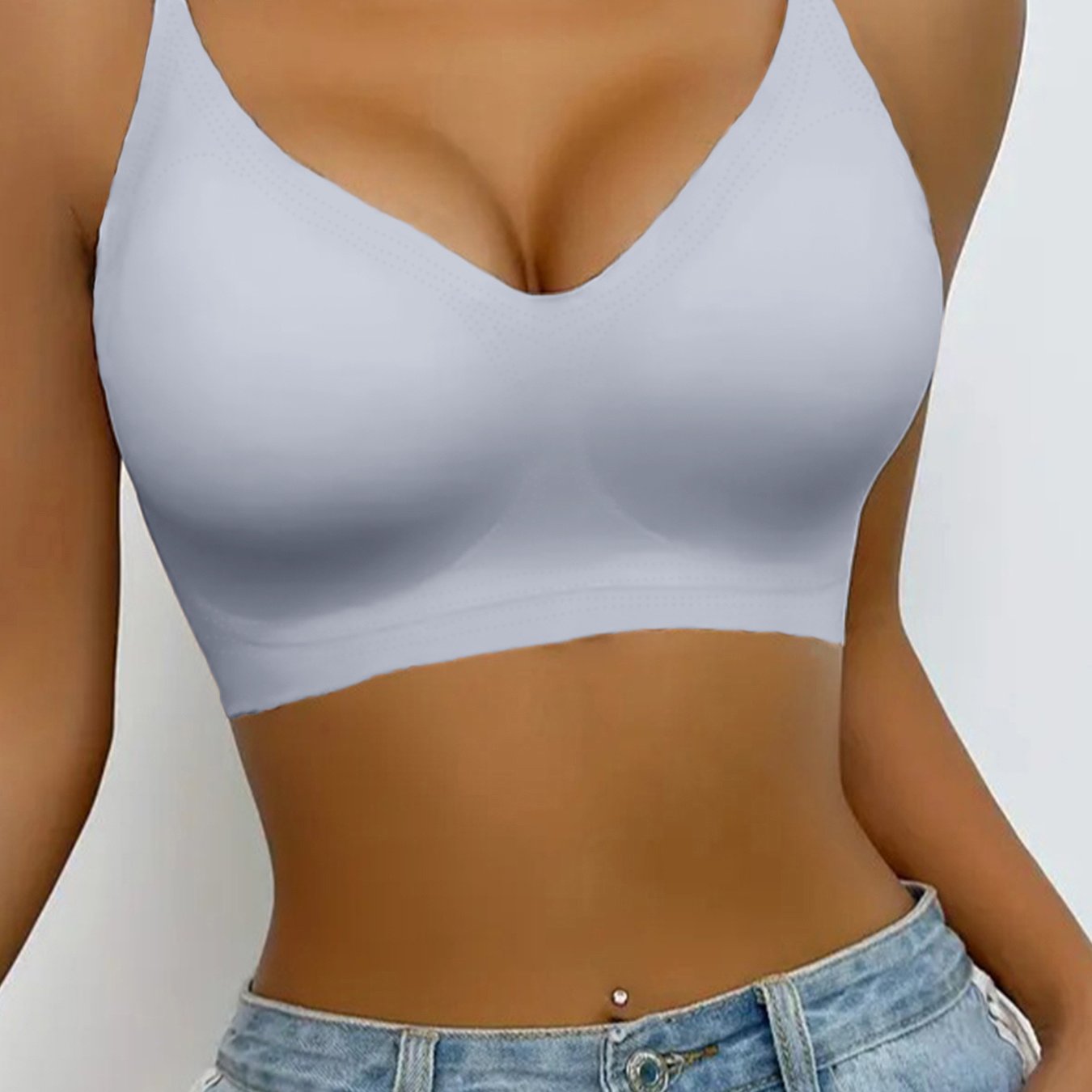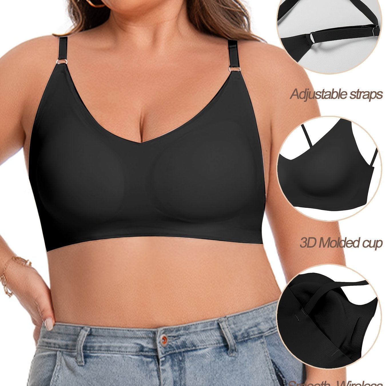 Plus o'lchamli uzluksiz sport brasi yumshoq pushti V-shaklli bo'yinli to'liq qamrov olib tashlanadigan padlar