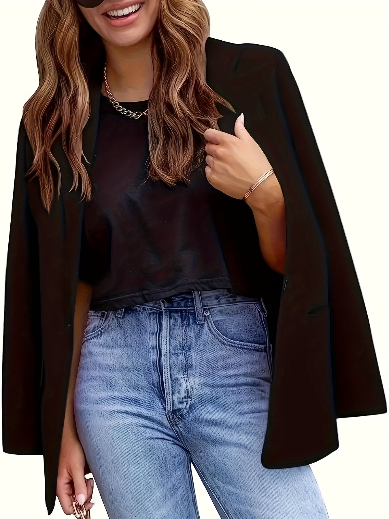 Ayollar uchun plussayz ofis va ish kiyimlari uchun ideal, bitta tugmachali yopiq, uzun yengli, plussayz mustahkam blazer.