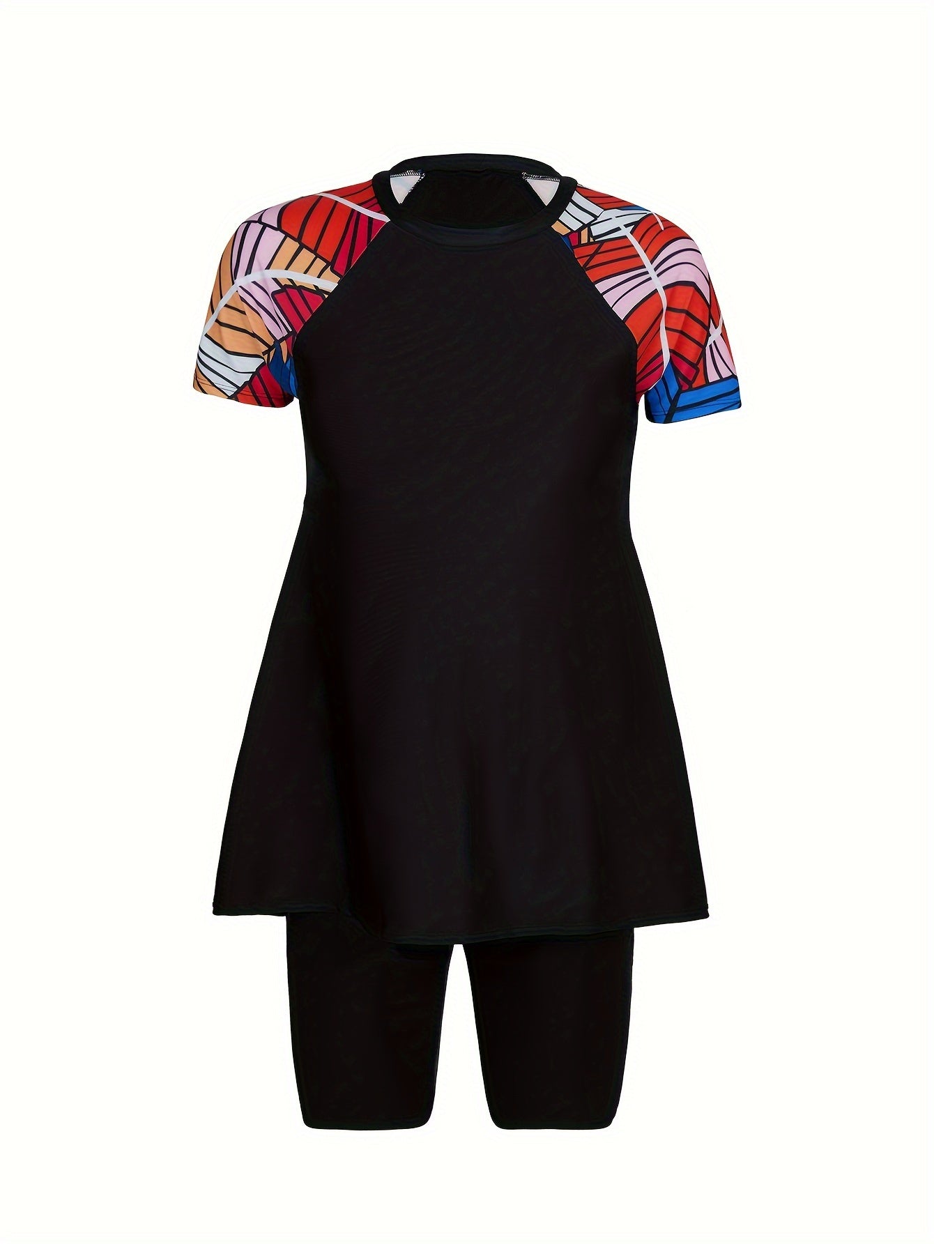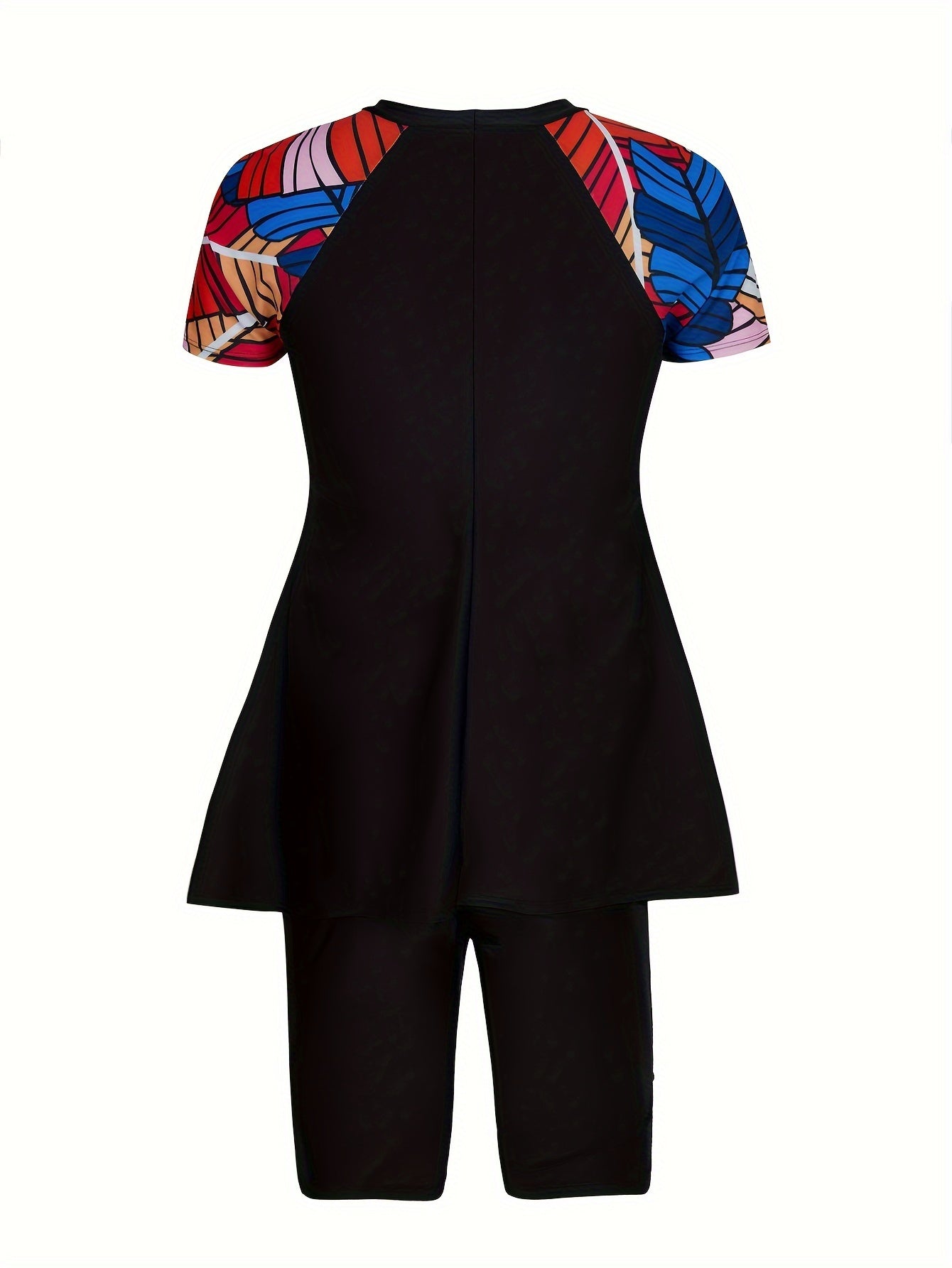 Katta o'lchamdagi tankini, o'rta uzunlikdagi yenglar va serfing printi bilan.