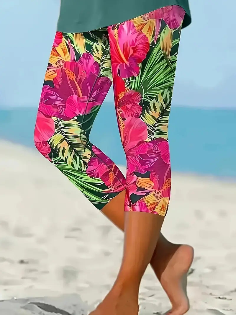 Plus Size Tie-Dye Stretchy Capri Leggings Polyester Casual All Seasons