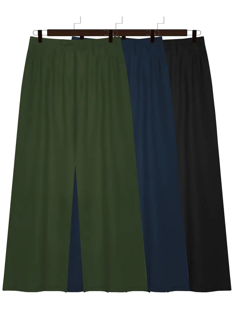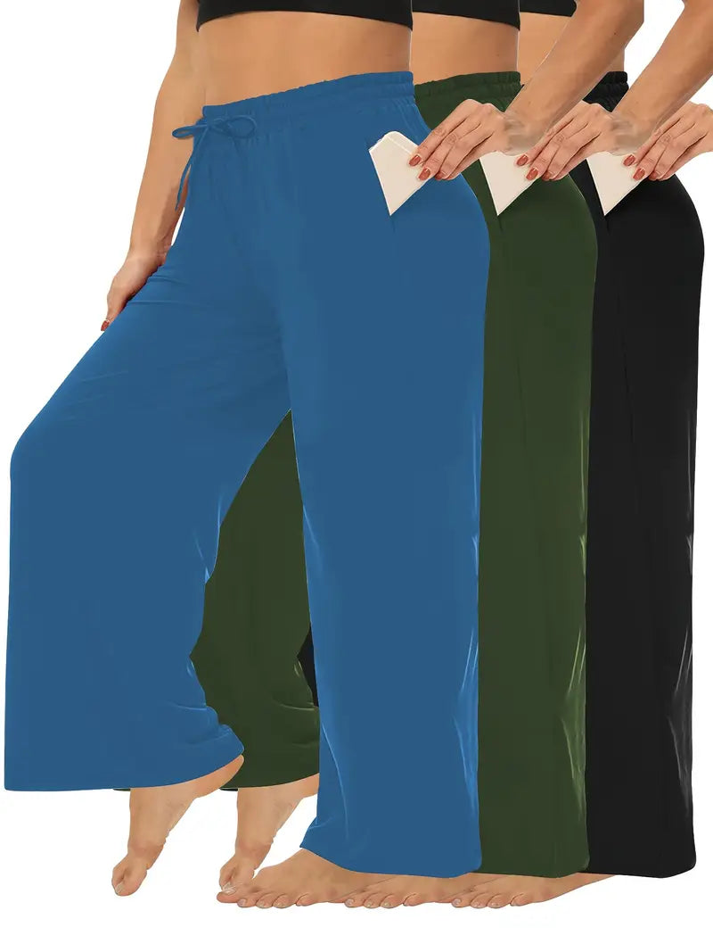Plus Size Wide Leg Pants Elastic Waistband Drawstring Pockets Cropped Casual
