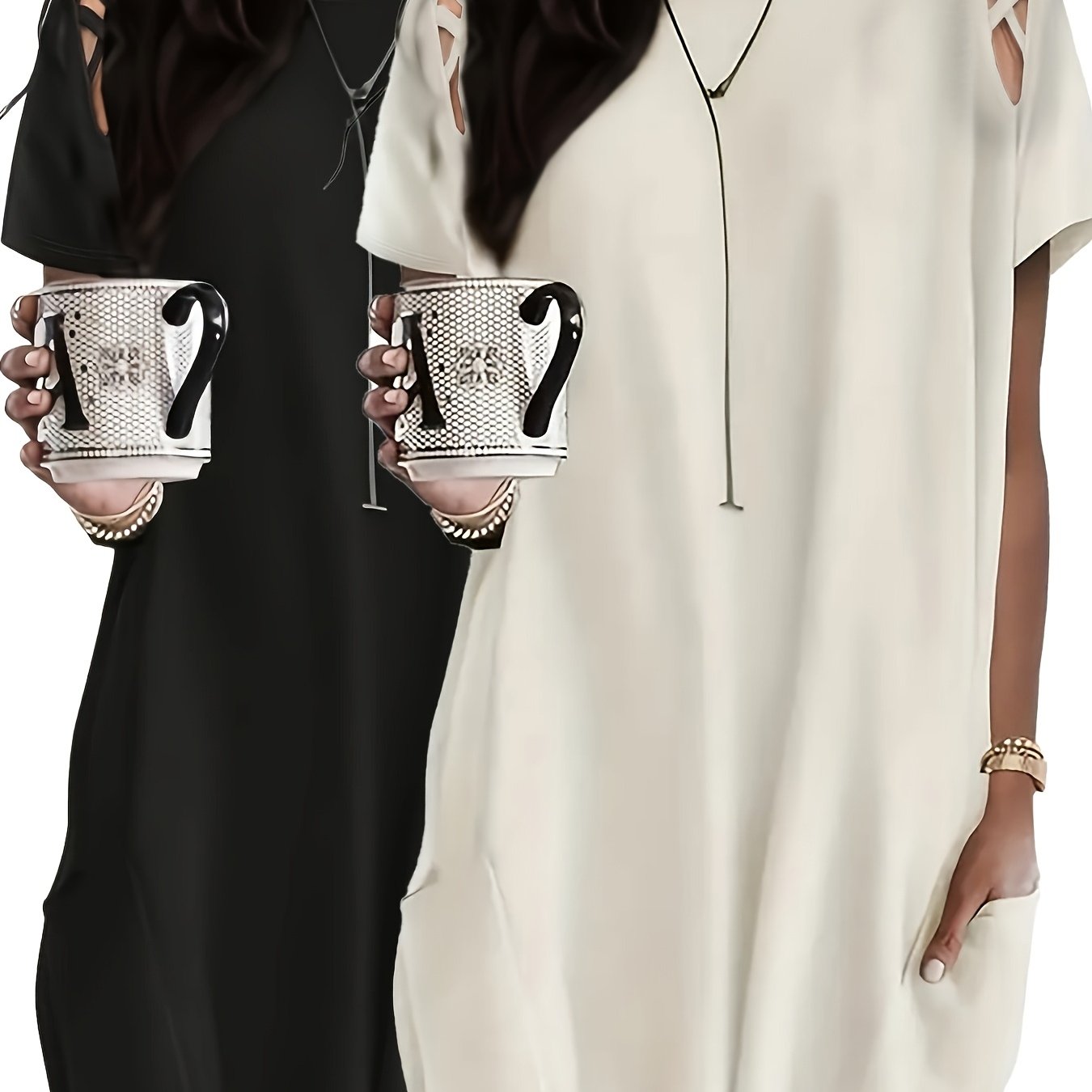 Plus o'lcham ayollar uchun batwing qo'lqopli kofta 2-to'plam qora, erkin fit bluz