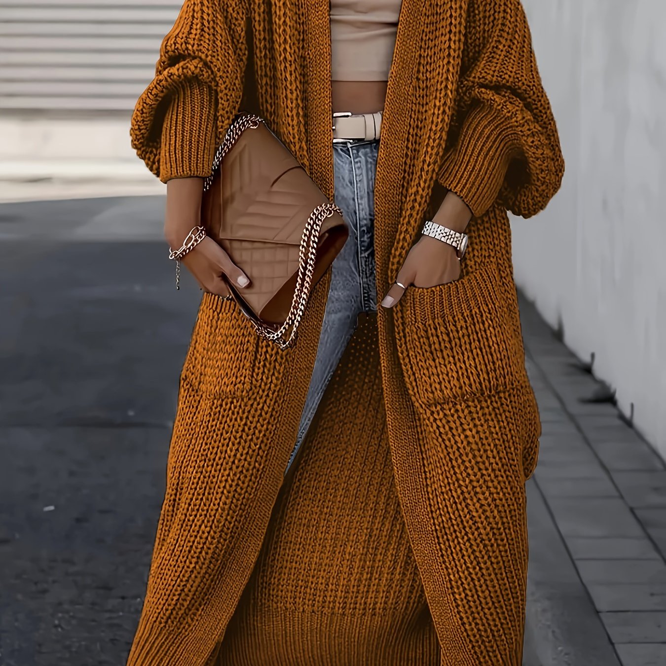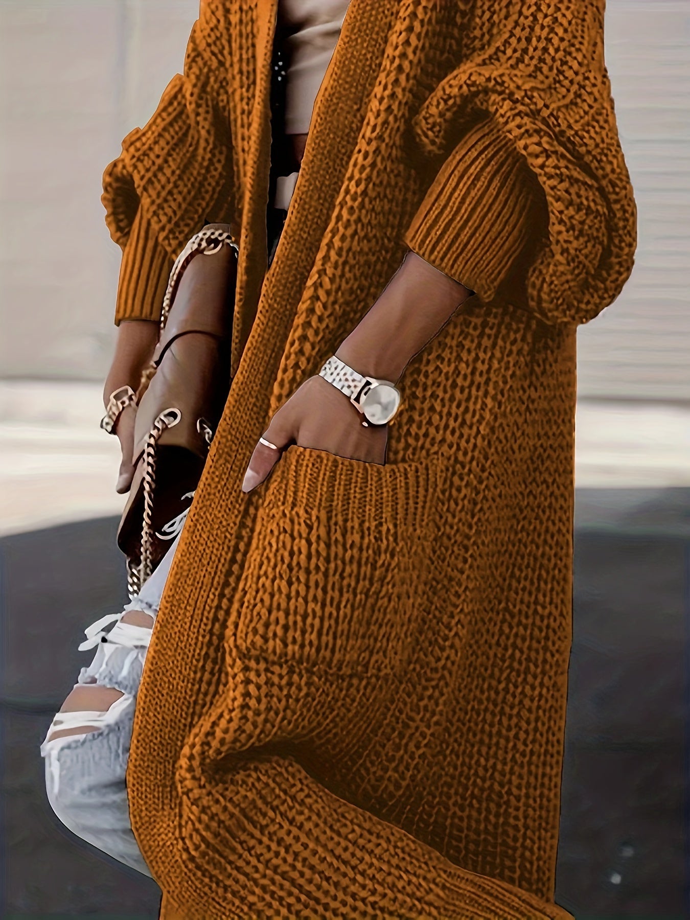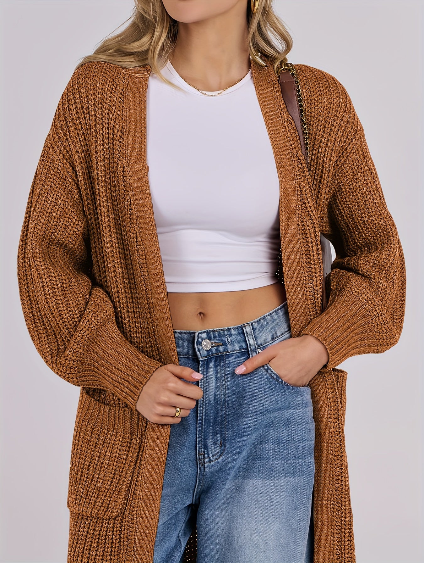Plus o'lcham ayollar uchun kundalik uzun qo'lqopli kardigan zaytun yashil, kuz-qish