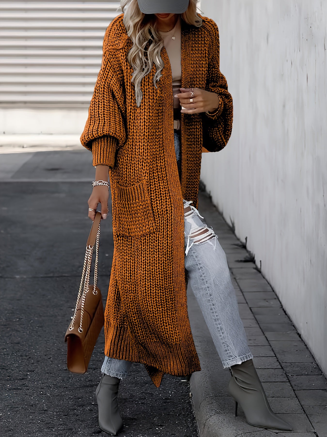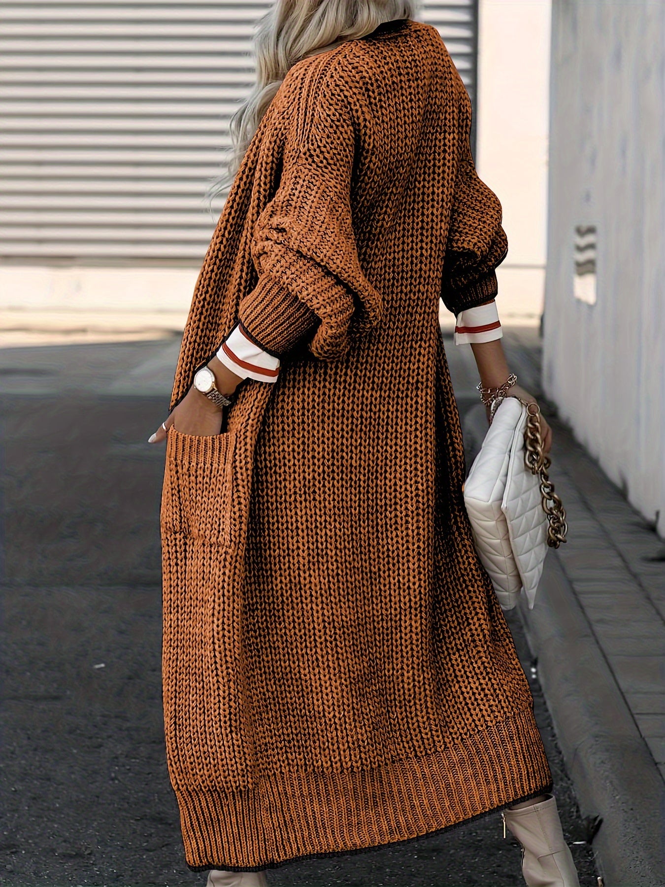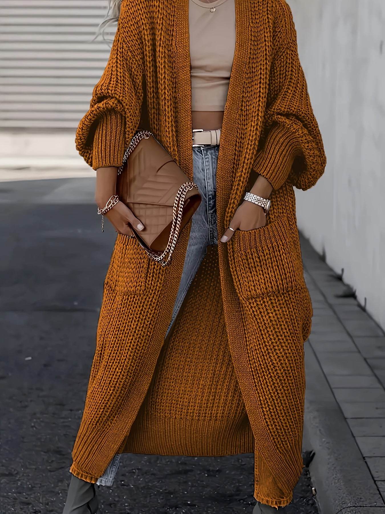 Plus o'lcham ayollar uchun kundalik uzun qo'lqopli kardigan zaytun yashil, kuz-qish
